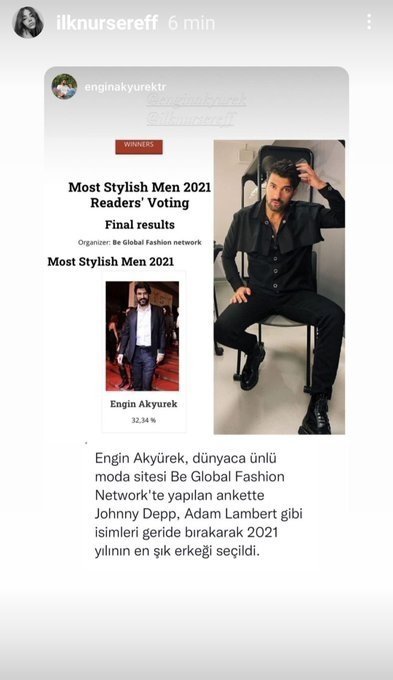 Енгин Акюрек беше избран за най-стилния мъж на 2021 г. с 32,34 % в проучване, проведено на световноизвестния моден уебсайт Be Global Fashion Network, оставяйки след себе си имена като Джони Деп и Адам Ламбърт.