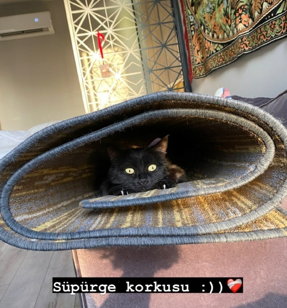От сета - пише, че котката се е скрила - страх я е от метлата...