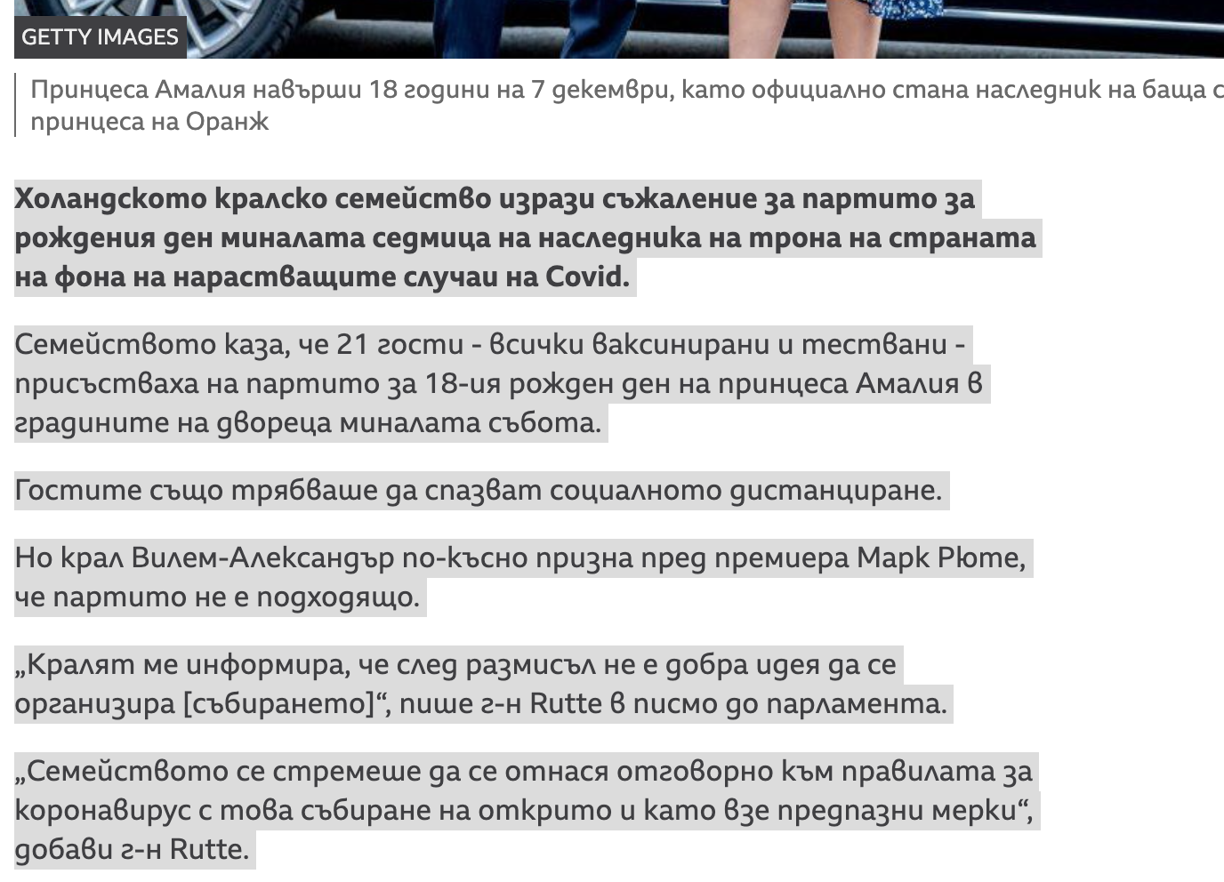 Първо бе рождения ден на Амалия през декември, който се оказа в разрез с правилата, Вилем се обясняваше писмено до парламента, че не било правилно. Сега член на тяхното кралско семейство се разхожда свободно по улиците при положение, че живее с болен от ковид съквартирант.