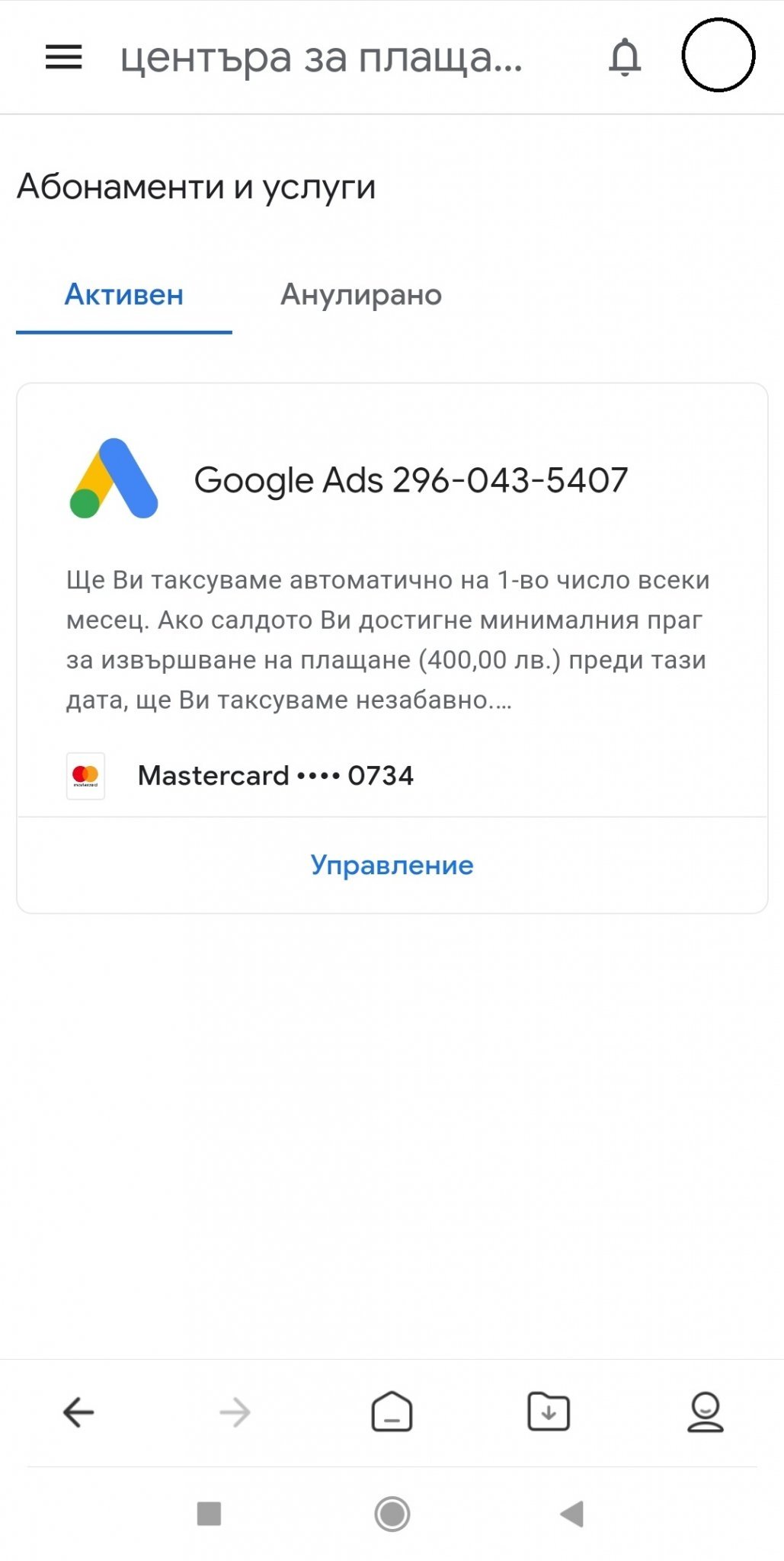 Сега се разворих допълнително. Влязох в центъра за плащане на Google и излиза някакъв абонамент (през google pay не излиза нищо, явно не е от това приложение). Ужас...не знам как е станало. Излиза, че съм се абонирала за някакви реклами за "моя бизнес". Аз бизнес нямам....ще чета сега какво да правя. Не виждам опция да го спра....