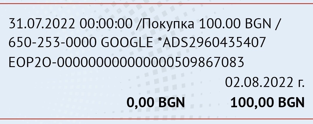 Вчера с изненада установявам, че от картата ми са дръпнати 100 лв. /гледам през моб. приложение на ЦКБ/ и на основания пише google ads.