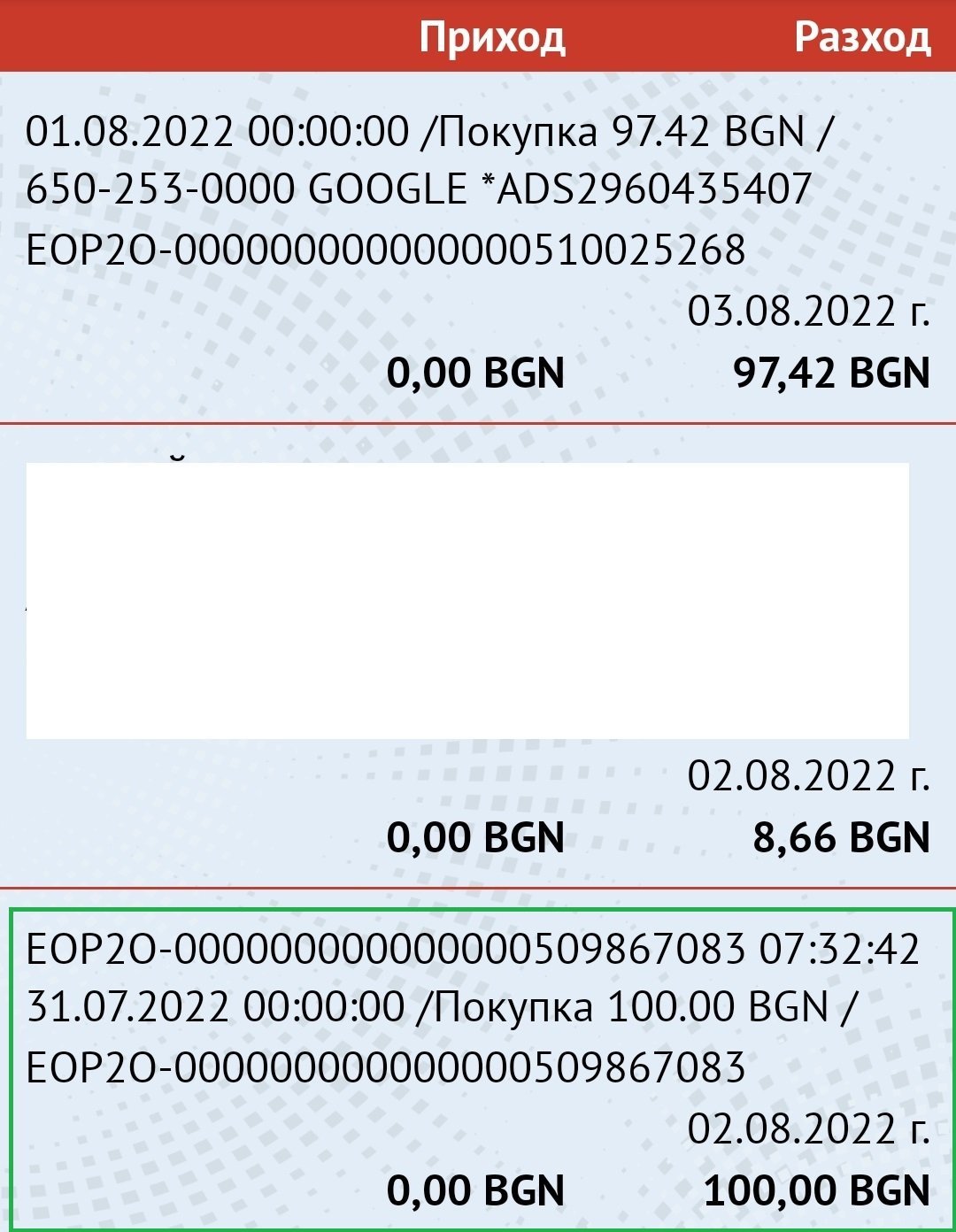 Гледах си хисторито на google wallet, защото обикновено плащам с телефона, но там не са отразени подобни плащания.