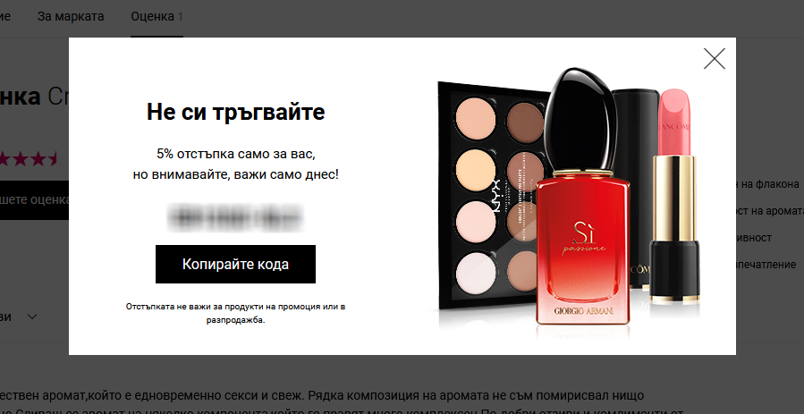 Една хубава оферта за гарденията на Гучи, която се обсъжда в другата тема https://www.notino.bg/gucci/flora-gorgeous-gardenia-podarchen-ko … zheni/p-16099578/   за 127.20 лв с код за 5% ( може да си го генерирате през инкогнито страница на браузъра). 100 мл + 5 мл + 7.4 мл едп