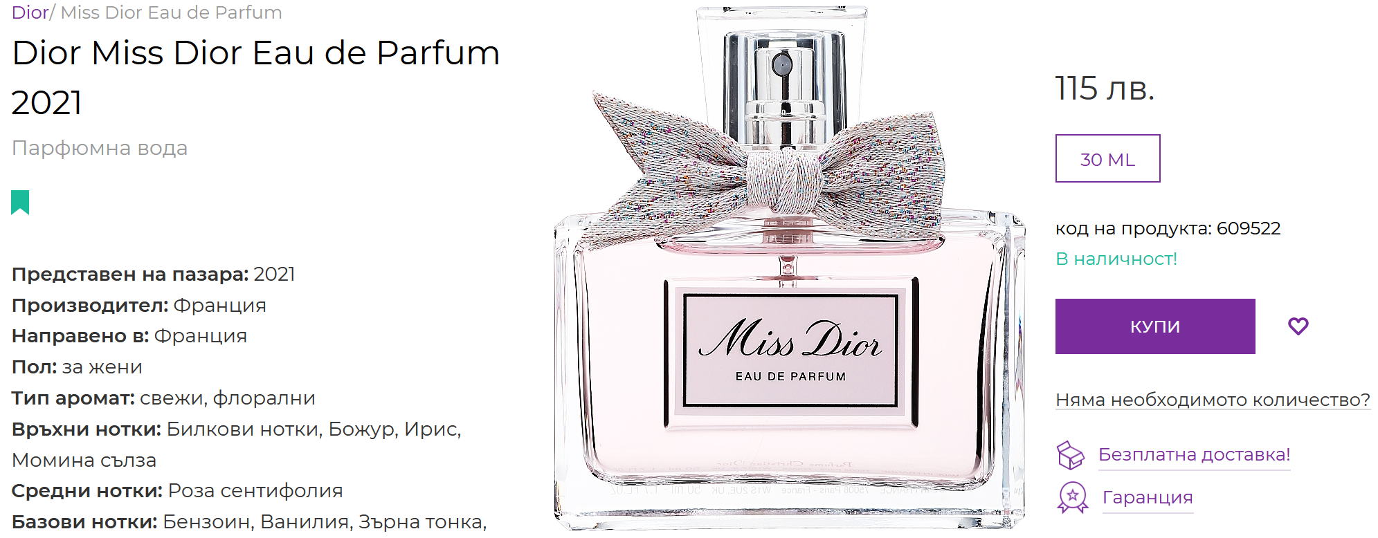 Продукт - 139 лв. пак в Elfragrance,  също в Perfume-bg, Venera, 140 лв. в Parfimo..