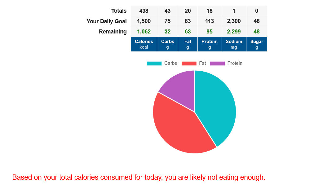 Калориите са по-малко даже. Вкарах едно кисело мляко, но половин ползвах да си напрявя айран.Но не съм пила и вода. Като не ям,не съм и жадна и не ми се пие. Както и да е, дано да мога да изкарам още един ден (мисля четвъртък или петък), и да не наваксвам с калориите през останалите дни.