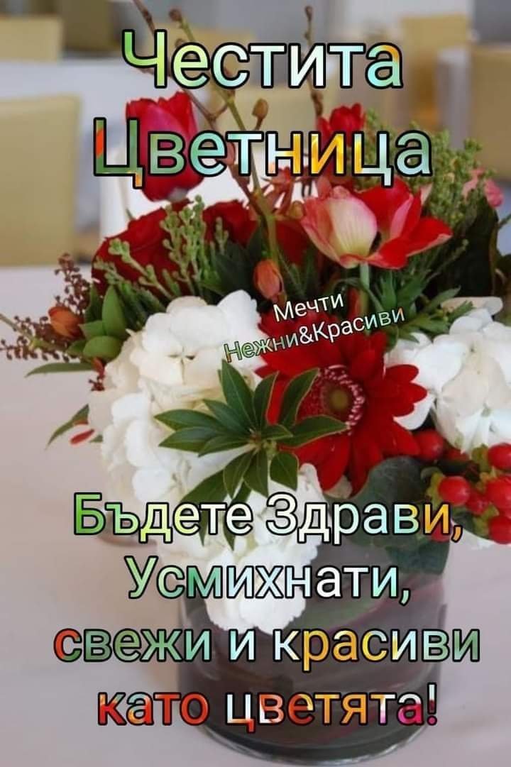 На всички  ви тук , а така също и в семействата ви,  носещи красивите имена на цветя, тревички, билки, храстчета, дървета честита Цветница. Живи, здрави, усмихнати!