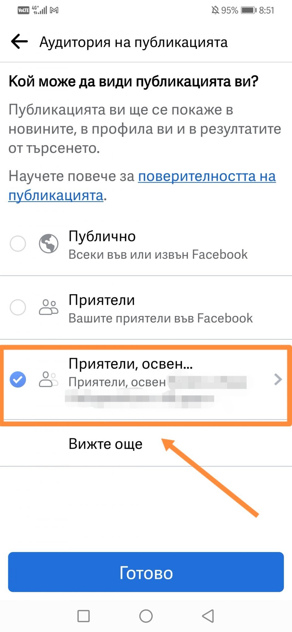 Благодаря ви, а как може да ограничат само той да не вижда публикациите ми.Гледах настройки публикациите да са публични или да се виждат от приятелите ми, но само един човек да не ги вижда не съм наясно как се настройва.