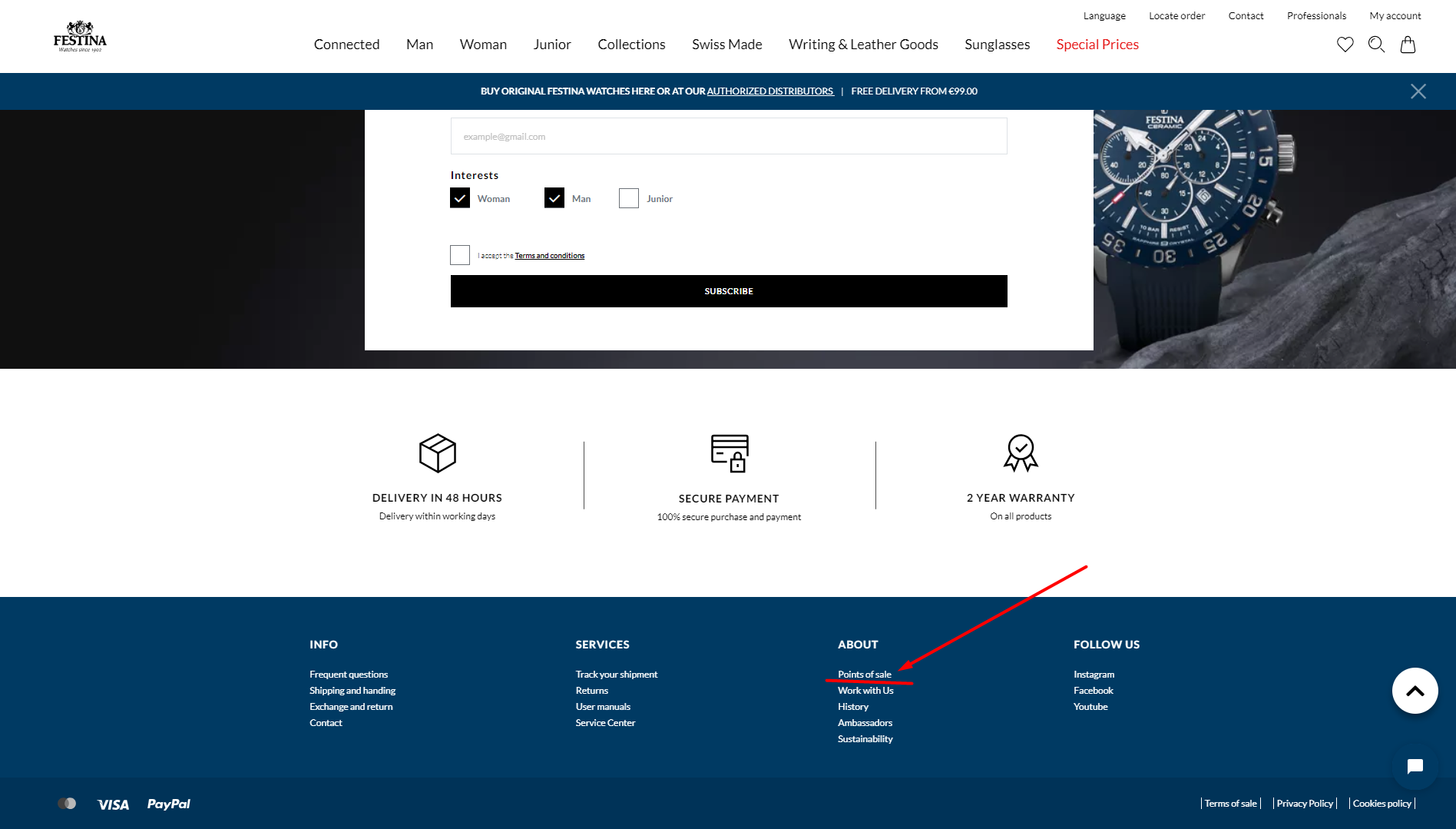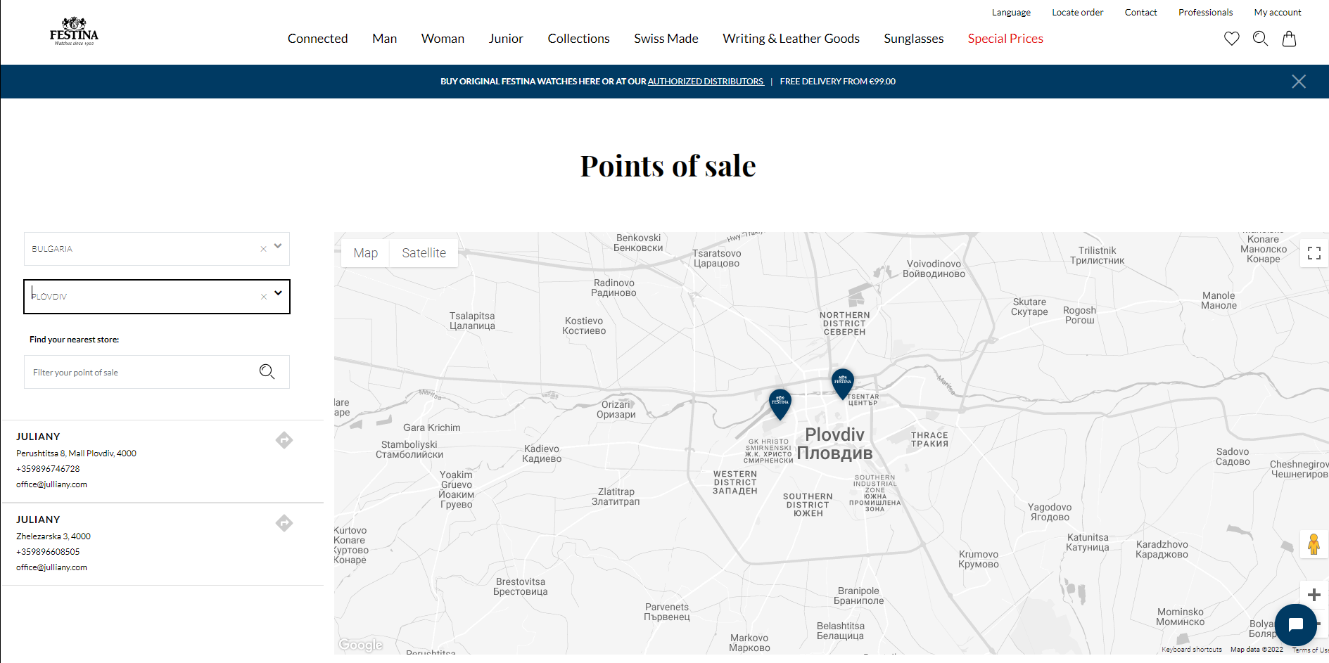 На сайта на Festina може да видите за всеки един град и държава кой магазин официално ги представлява.