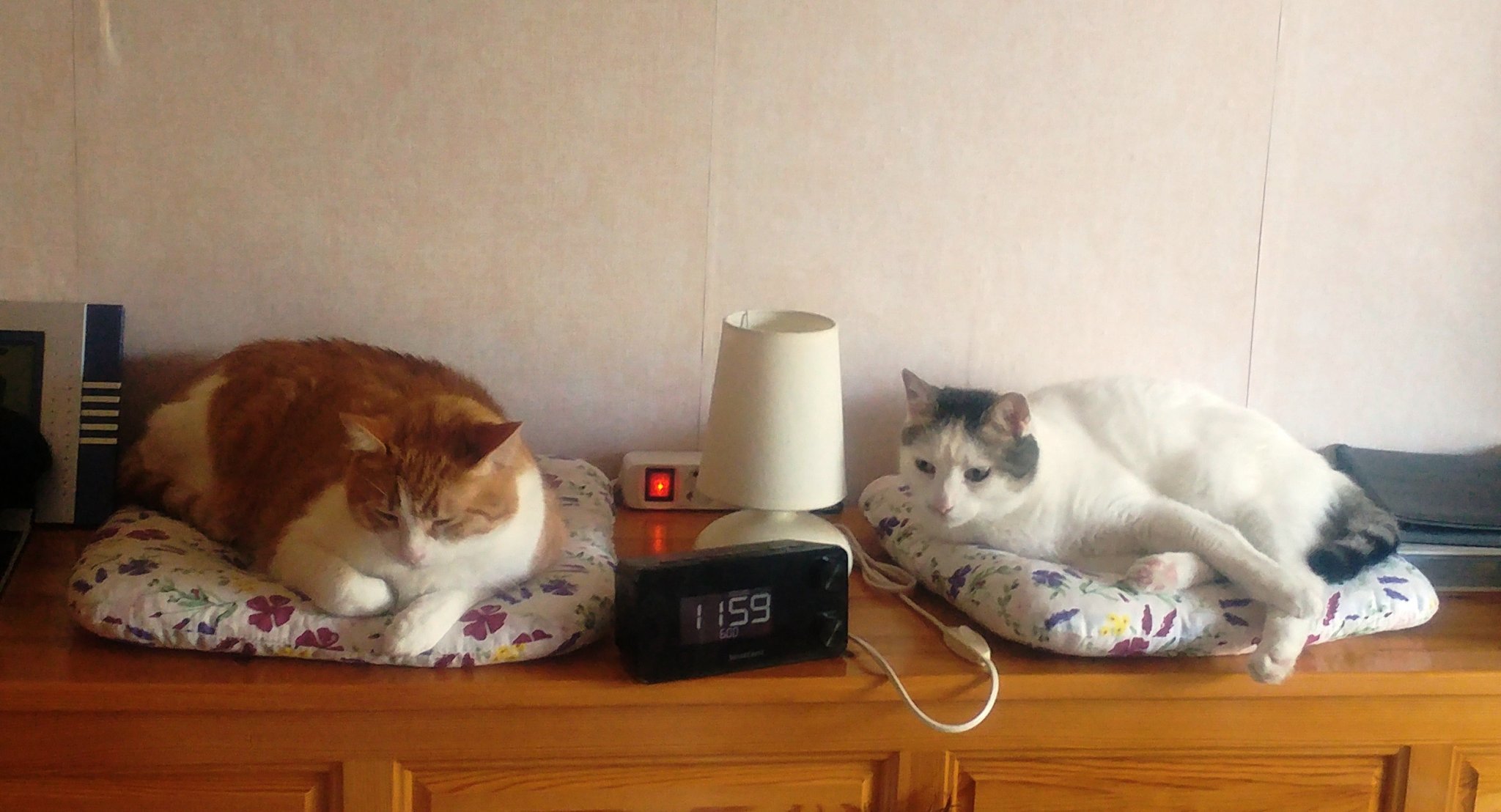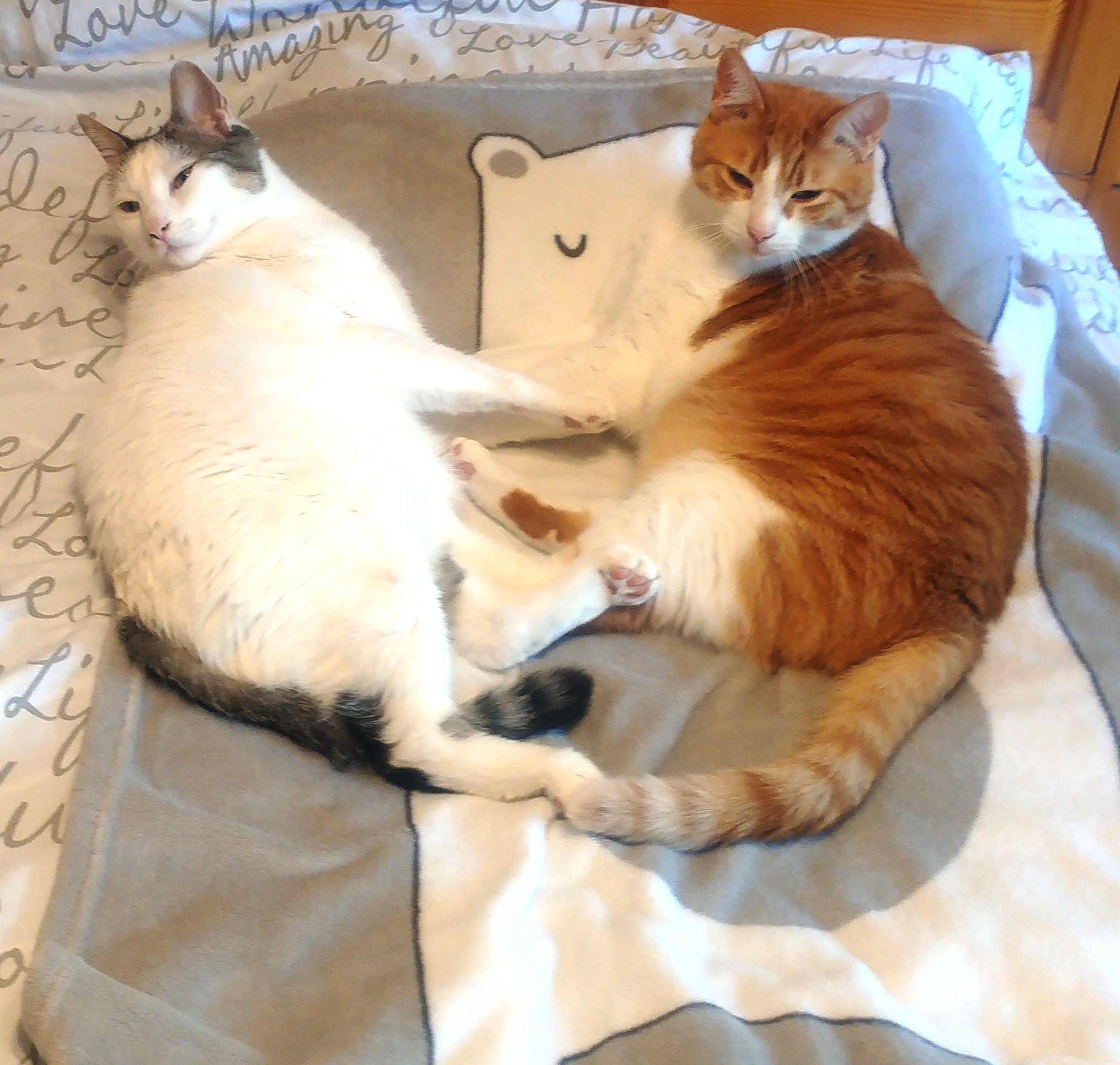 Оникс (черният) винаги спи до нечии крака. (В случая - на тийна)