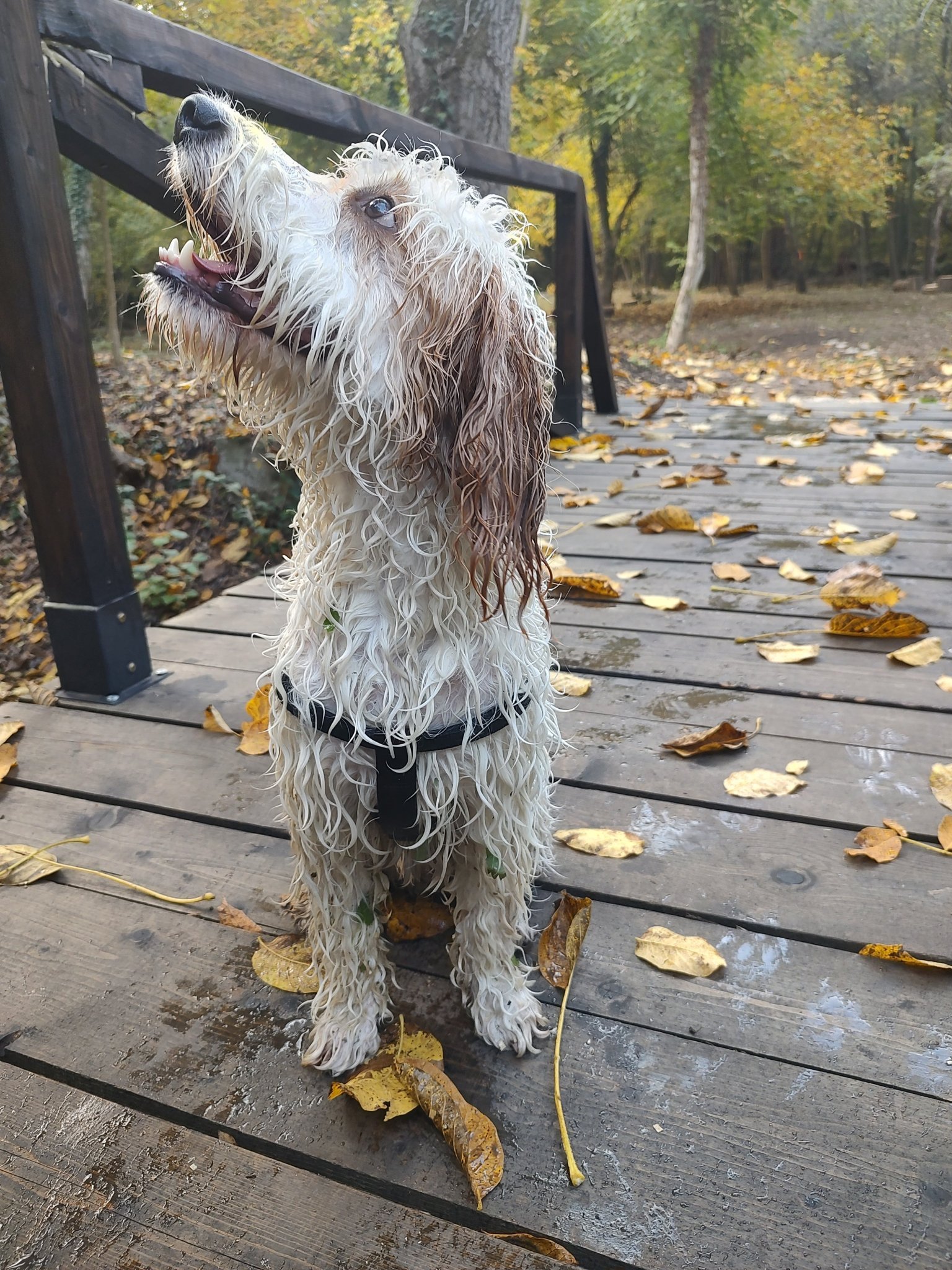 Рико вчера! Разходката в парка се превърна във водно бедствие. След като направи тигел по моста без проблем и слезе към водата помислихме, че ще е за да пие вода. Да, ама не. Направо във водата. Малко тегаво начало, студено, но излезе на сушата.