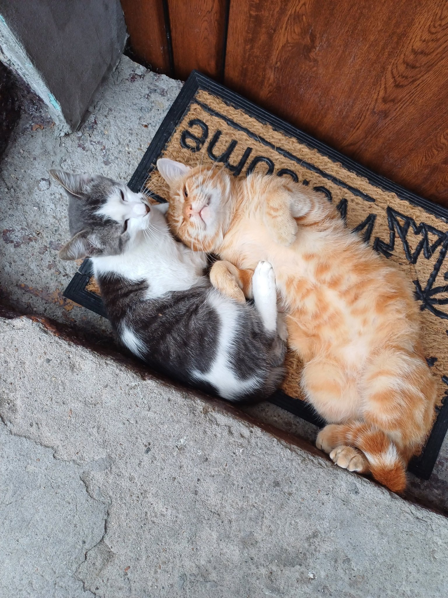Ааа това не е нормално,тази тема е убийствена . Само от последните 3 4 снимки се разтопих ,а каква сладост ...нямам думи. Ще сложа и нашите две душички,един осиновен и един натрапил се. Били е жълтото коте а друго Лео,всички кръстени от мен.