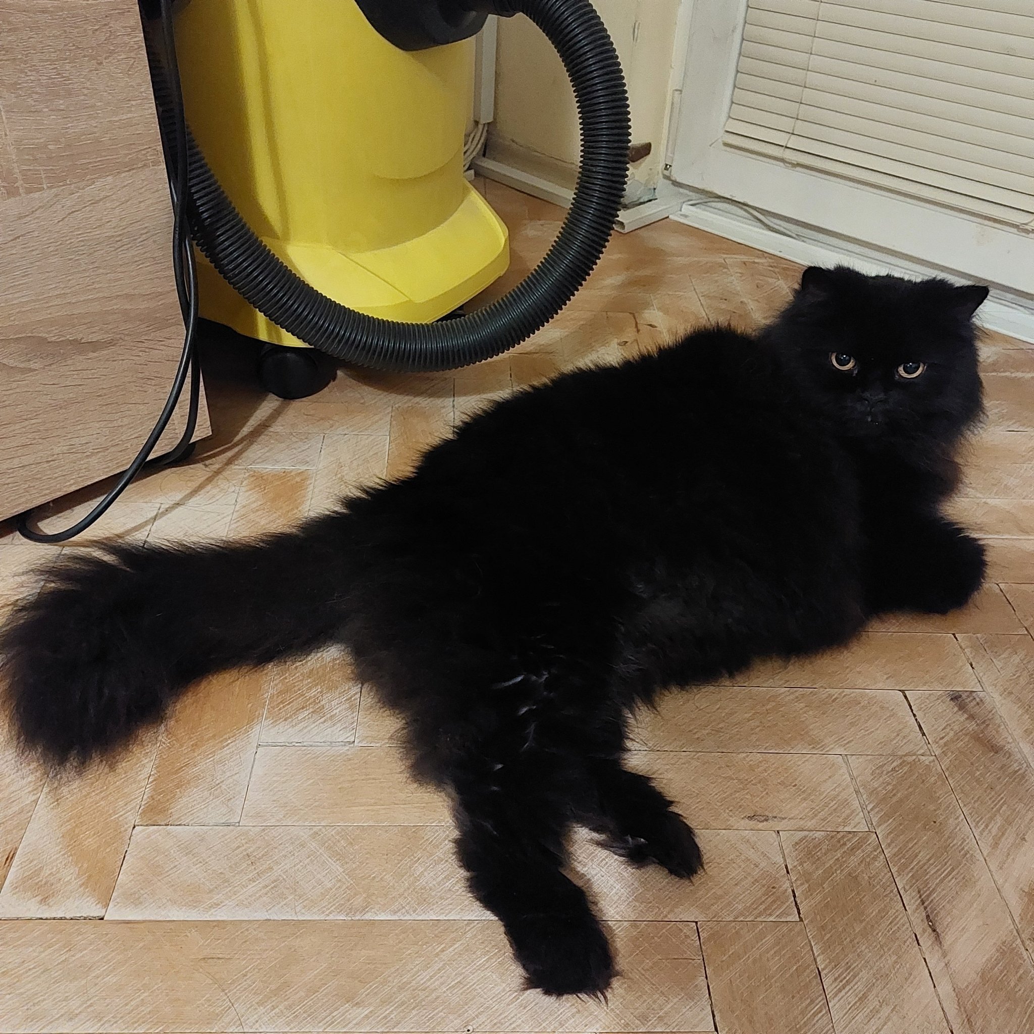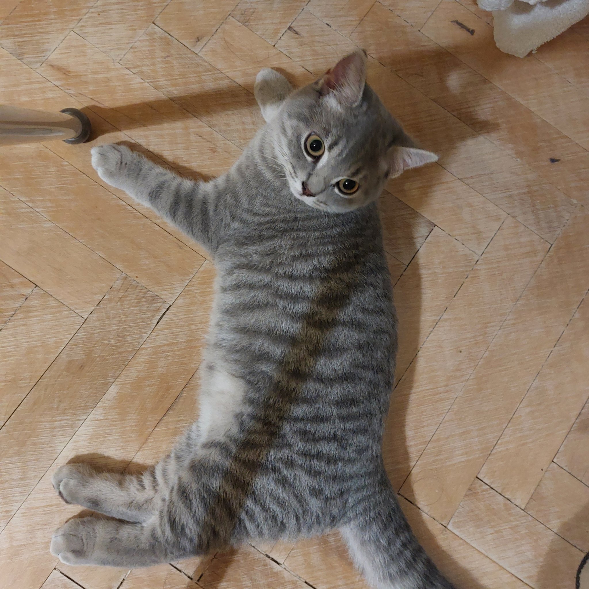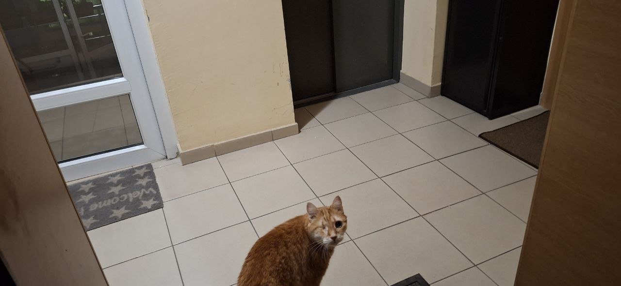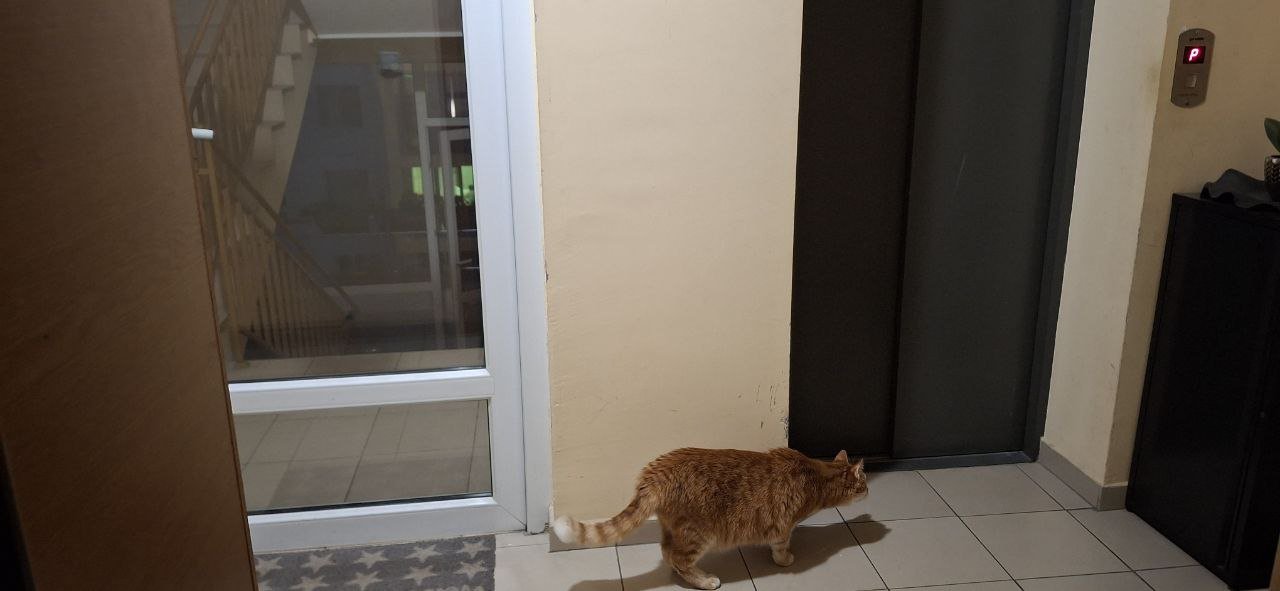 Инак ей го тук отпреди седмица някъде на обичайната си сутрешна разходка. Стана като куче - всеки ден след като се нахрани и мине сутрешния тоалет застава пред вратата на апартамента и чака да го пуснат навън. Въпросното навън е стълбищната площадка където 10-15 минути нюха по вратите на двата съседни апартамента, населени също с по един котарак.