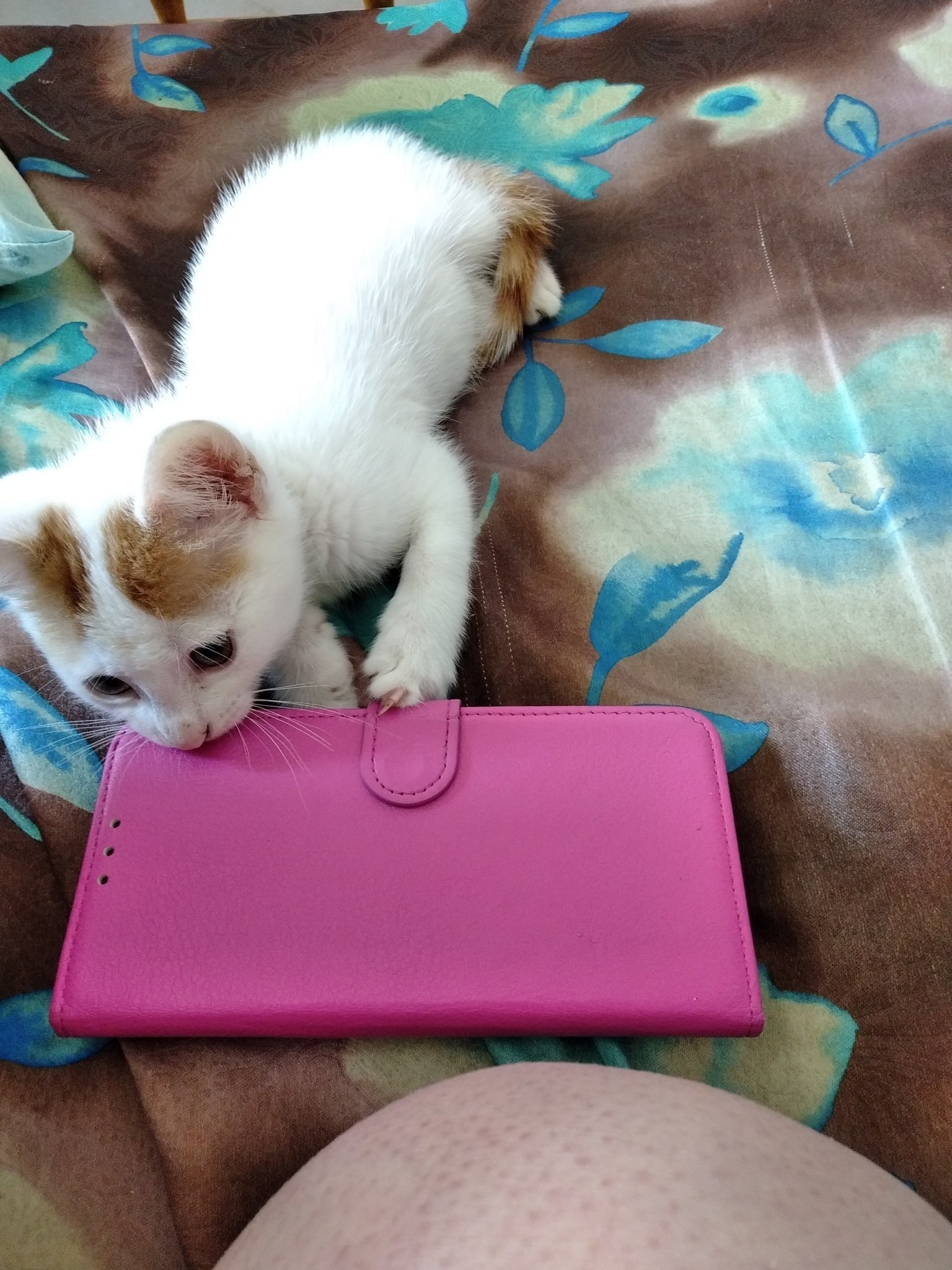 Мм си лежи и си цъка шах на телефона, а Цуцка се е пльоснала влюбено върху него и кротко го обожава с мощно пър-пър-пър... 😆