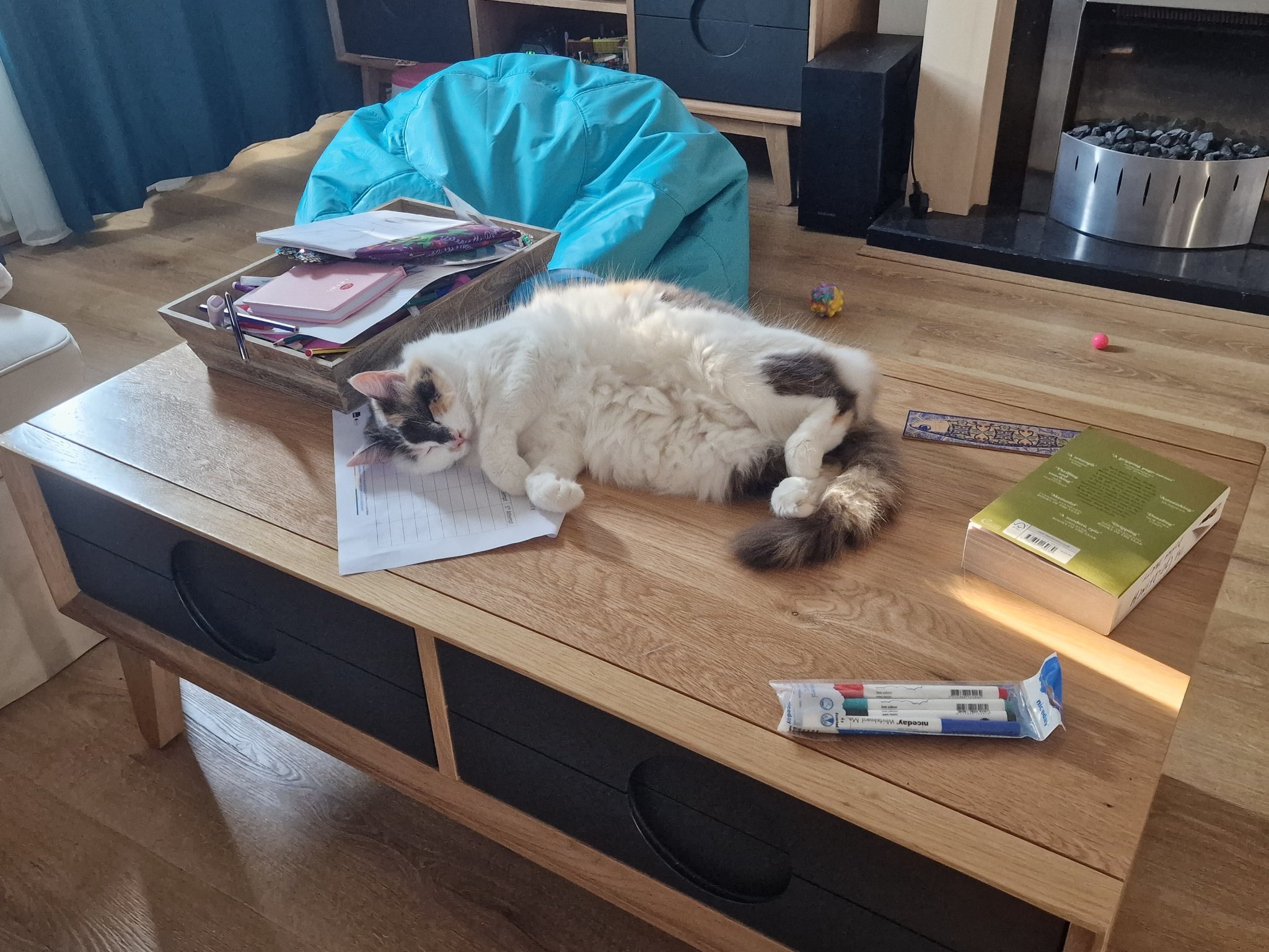 Котка цял ден лежи полу умряла на масата.