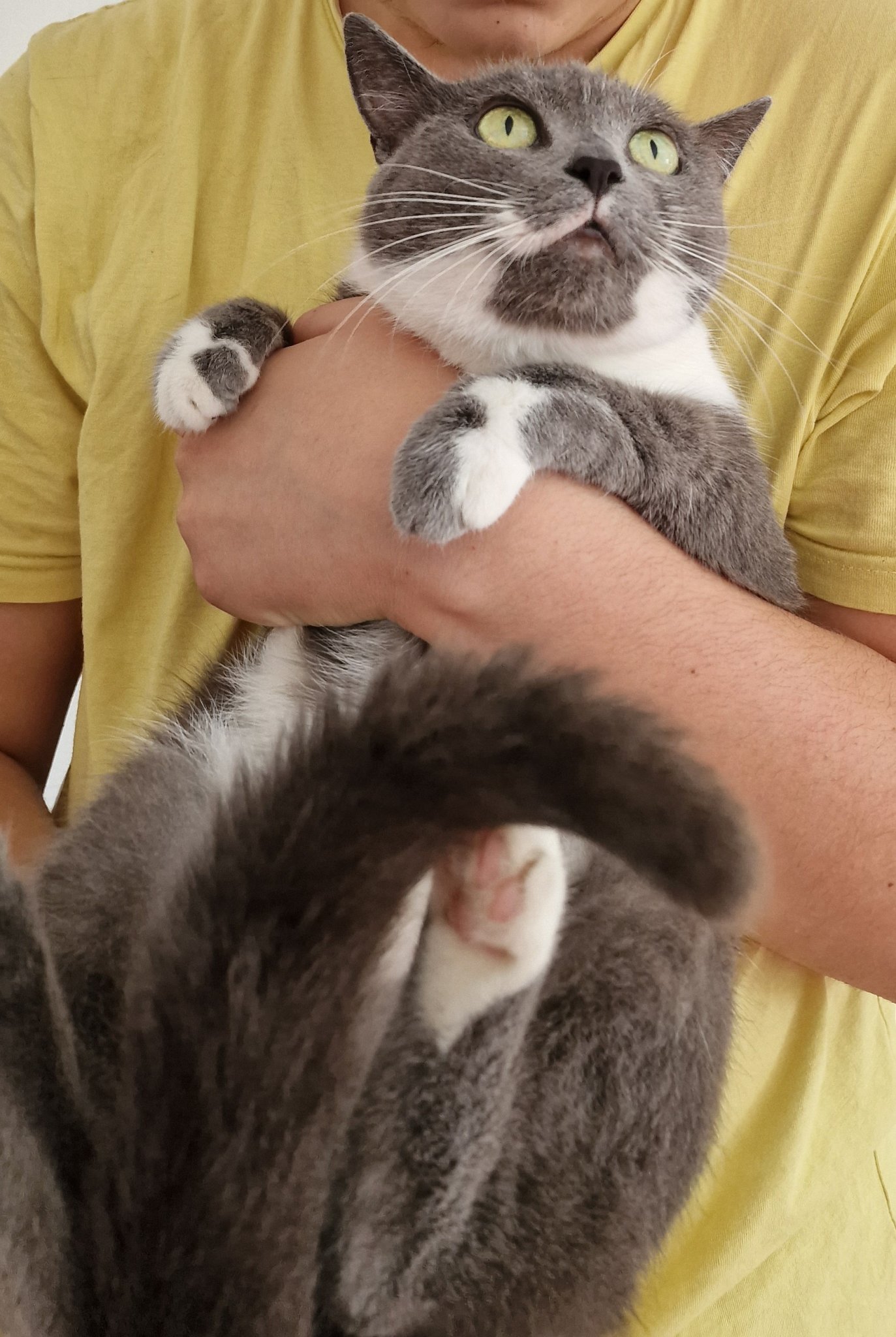 По неволя съм гледач на бебе коте. А съм с тежка алергия към котки. Но сърце не ми даде да го оставя да умре, едва устиска душицата да отвори клиниката. И така вечер е у нас на терасата ( затворена), а денем в клиника на системи. Вече три дни е добре, в къщи, само капки в очето слагаме и едно хапченце пие. Оказа се много мило, игриво, гушливо и с хигиенни навици, а е само на месец и половина. Сърцето ми се къса, че трябва да се върне на улицата при майка си, но аз не мога да го задържа. А то се държи като домашно коте, няма да изкара и месец навън. Търся отговорни и сериозни осиновители. Янтре, сигурна ли си за рошавото коте? Ако го гушнете това мъниче, ще се влюбите в него.