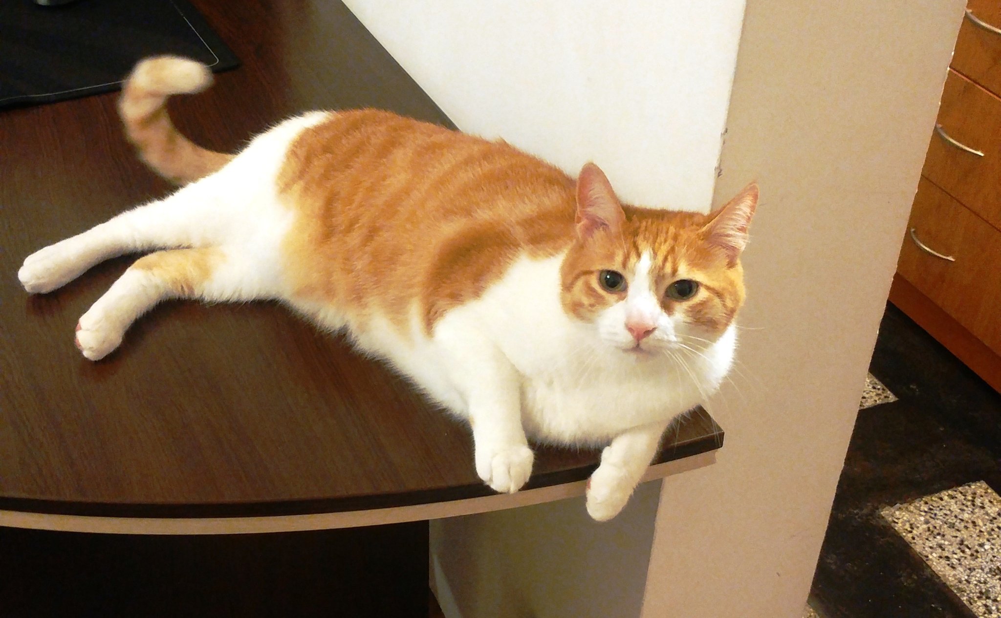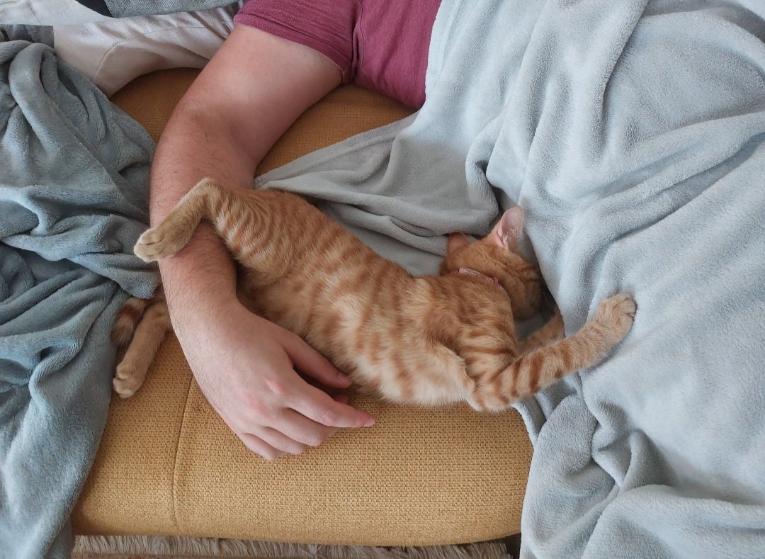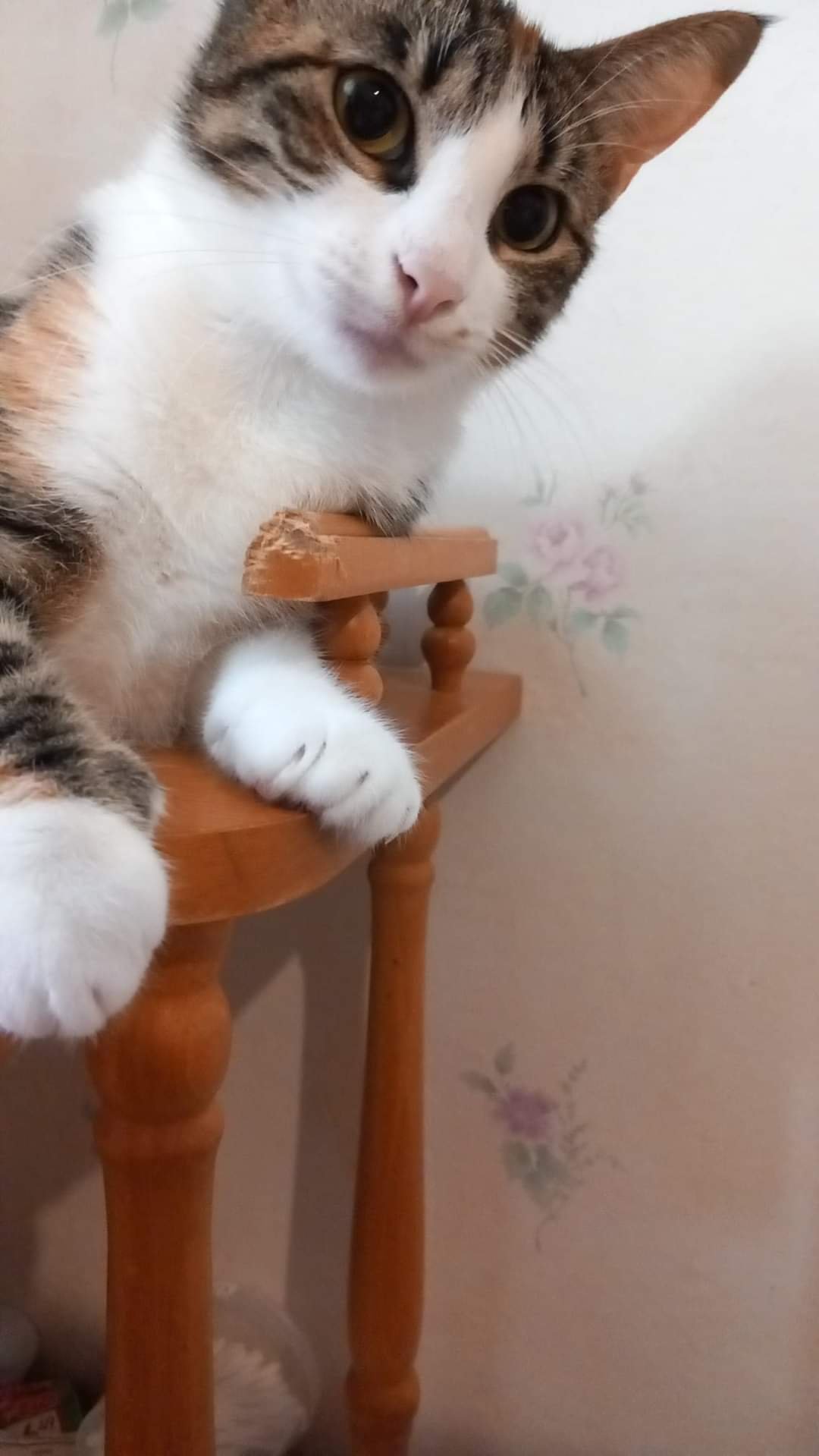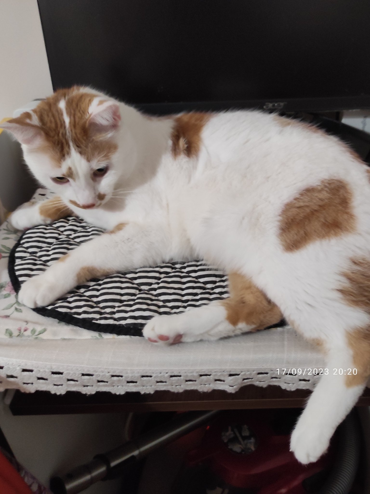 Точна възраст не знам, трябва да е на около 5 години и половина. Като го осиновихме ветеринарите казаха, че е най-много 4-5 месечен. При нас е от 2018, точно след като почина Топче решихме да осиновим, за да дадем шанс на някое бездомниче, попаднахме на него - грозен, слаб и ушат. Беше много трудно да свикнем до съжителстваме, котката беше много стресирана, с месеци живя под леглото  с все антураж. Според ветеринарите е бил малтретиран и с това обясниха поведението му тогава.