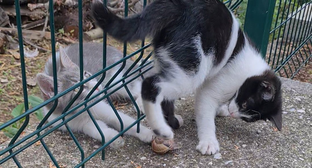 Едното ни бебе се проявило вече като ловец (хванало си мишка). Птичките също са му интересни, но още няма успех с тях.