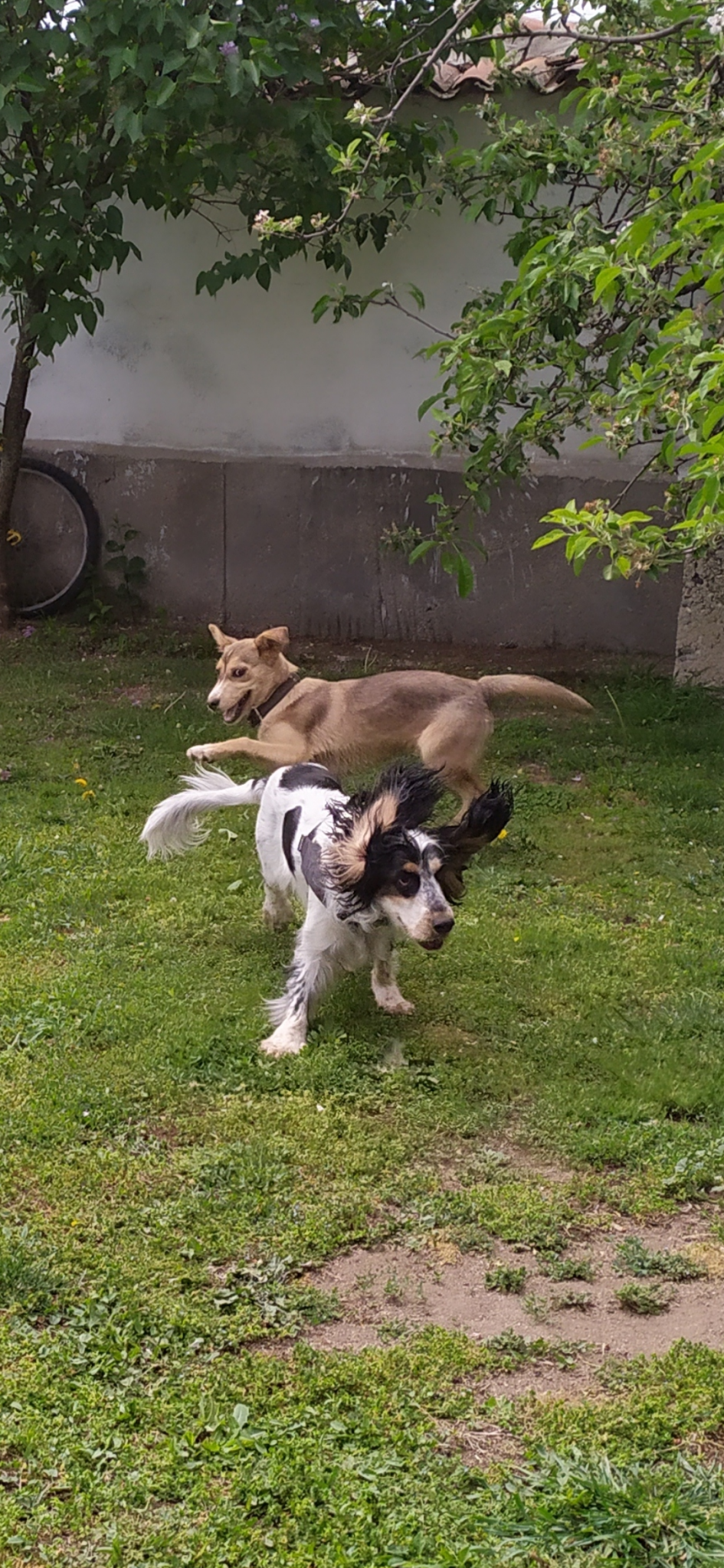 Нашите дворни зверове - черната е Йода - спасена от уличен живот. Като я изкъпах, приличаше точно на Йода с клепналите уши и мислех, че е мъжки. Черно-бялото кюфте е Джони. Подари ни я приятел на мъжа ми, само че беше с името Джени Joy