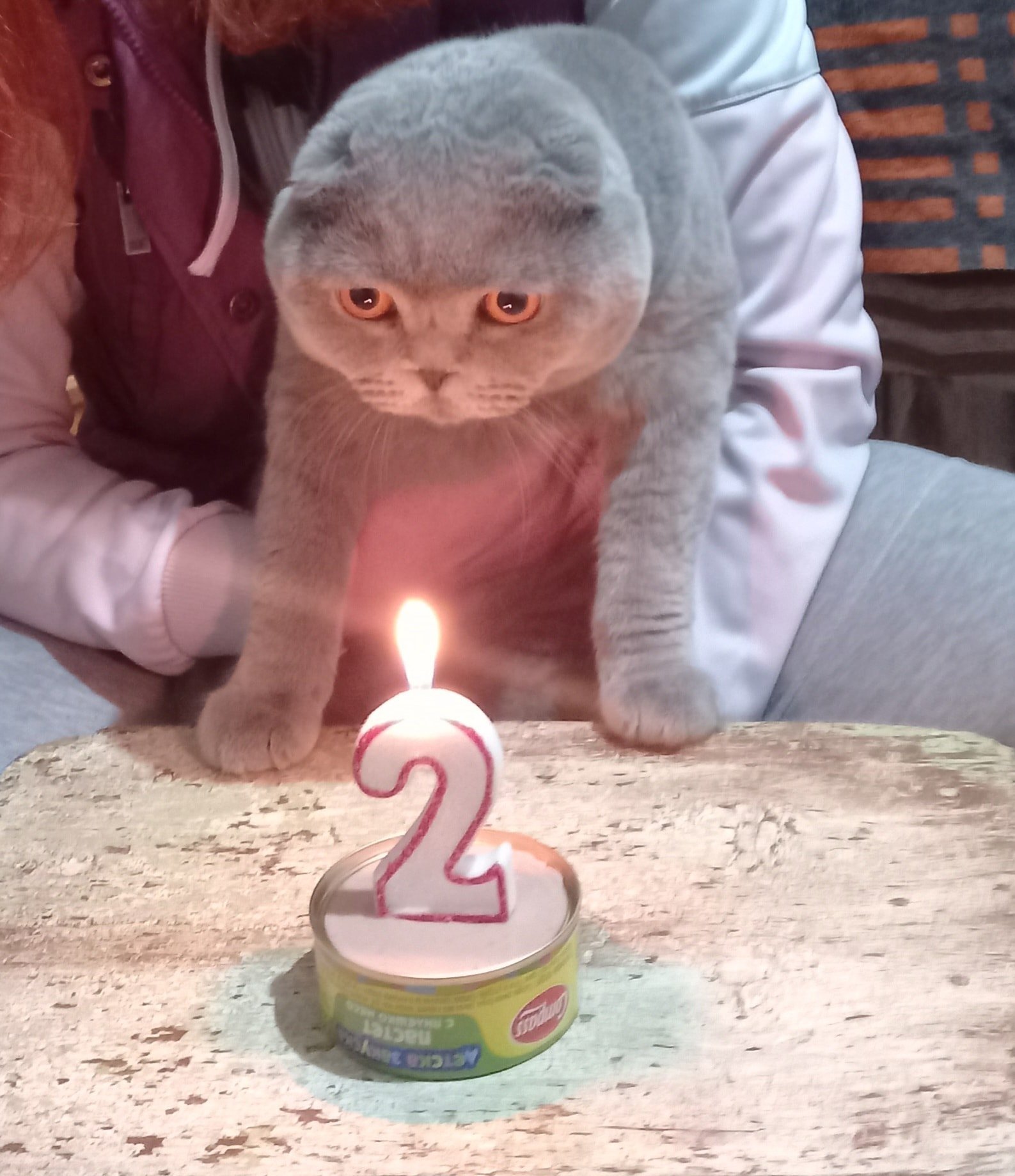 Ух, че лошо гледа рожденика! Сигур се чуди защо е само един пастета, пък пише две Satisfied