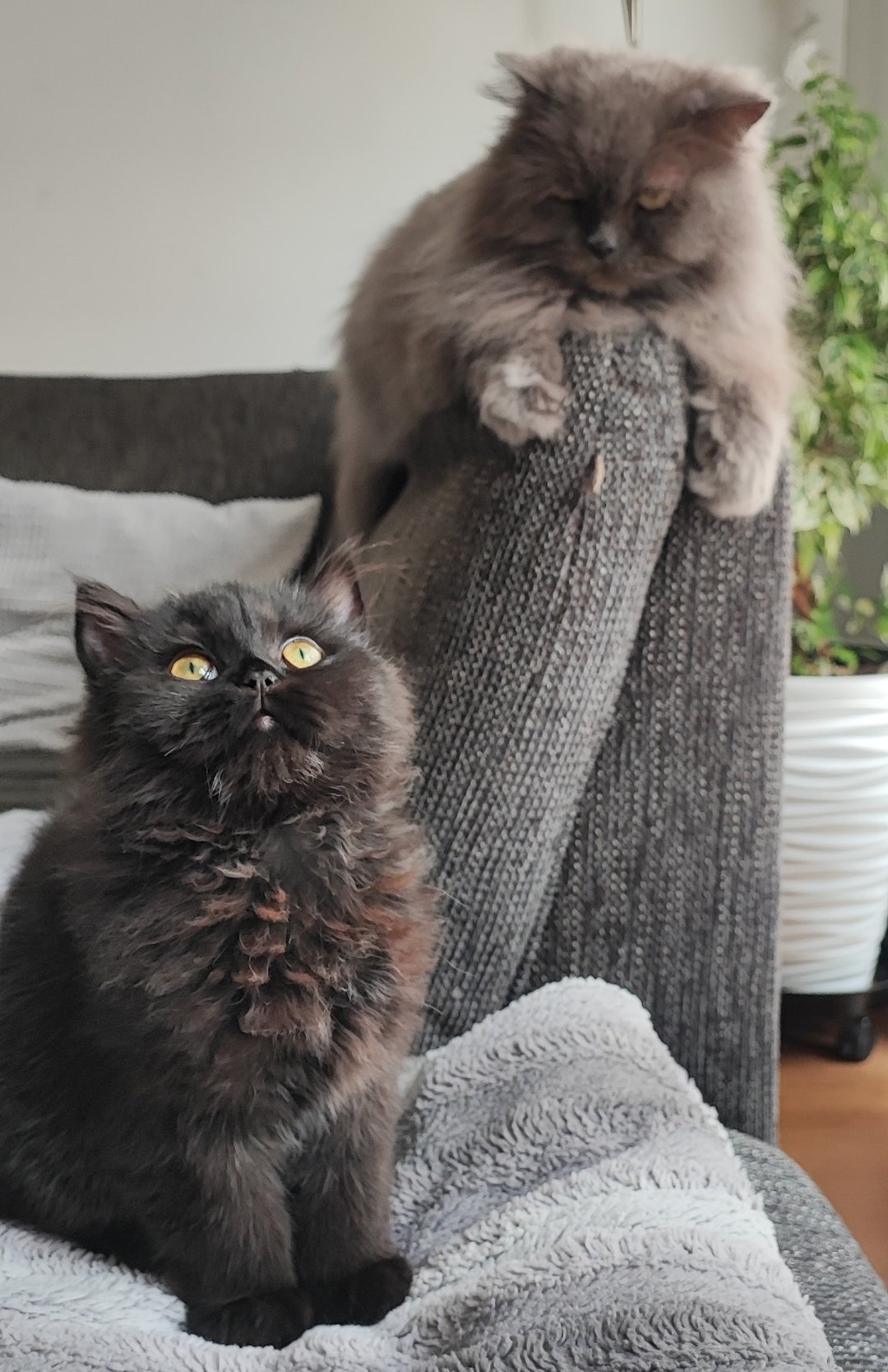 Тук са с предполагаемия татко - комшията Мишо, който вече е с кръцнати камбанки. Колко трябва да изчакам да пораснат котетата за да кастрирам майката? Малко ме е страх с тия упойки да не вземе да не се събуди, тя е много дребна...🫣