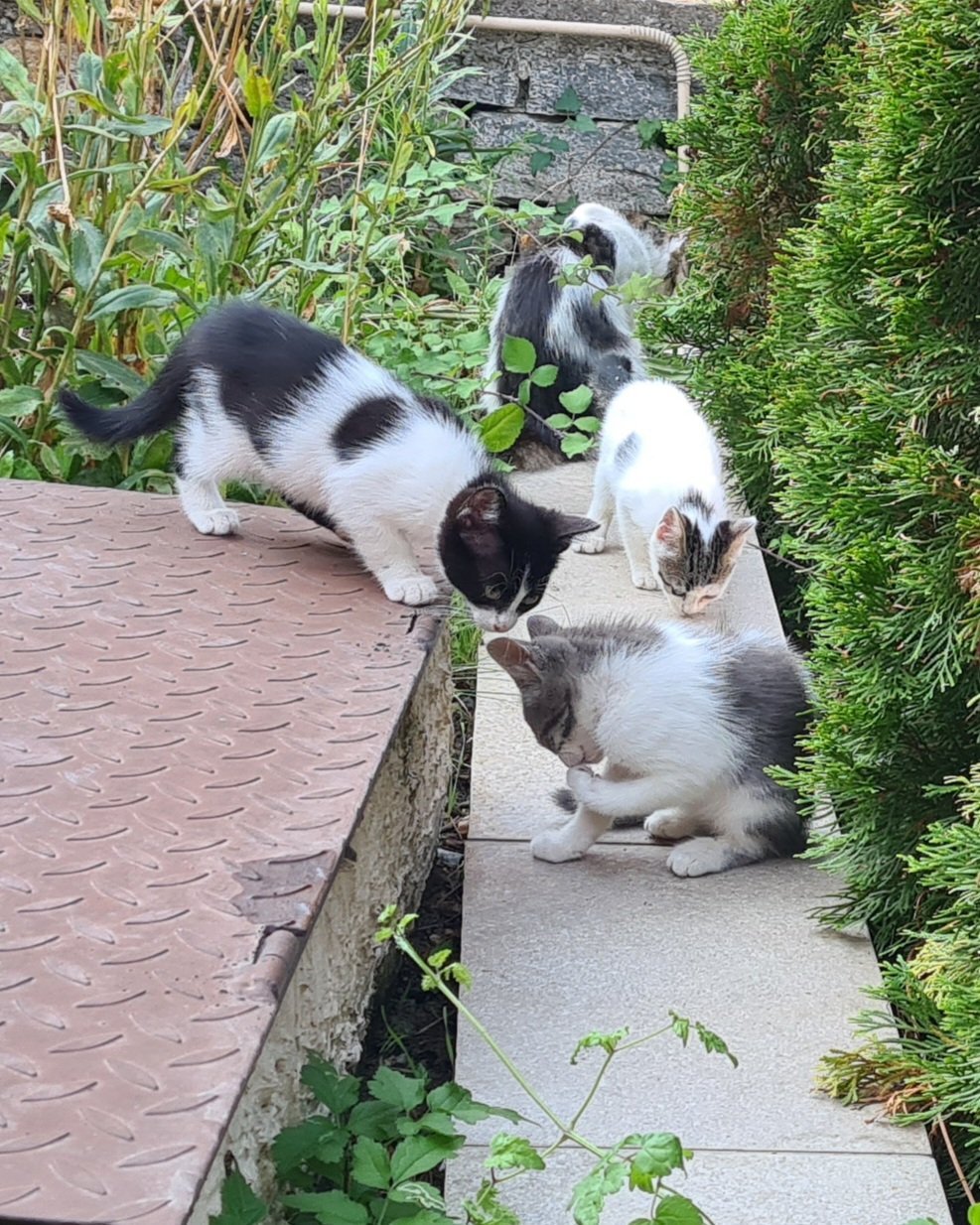 Това не са домашни котки, живеят само навън и основно в моя двор. Не знам къде ги е крила, мен и ме нямаше много време, но бързо опознаха обстановката🙂
