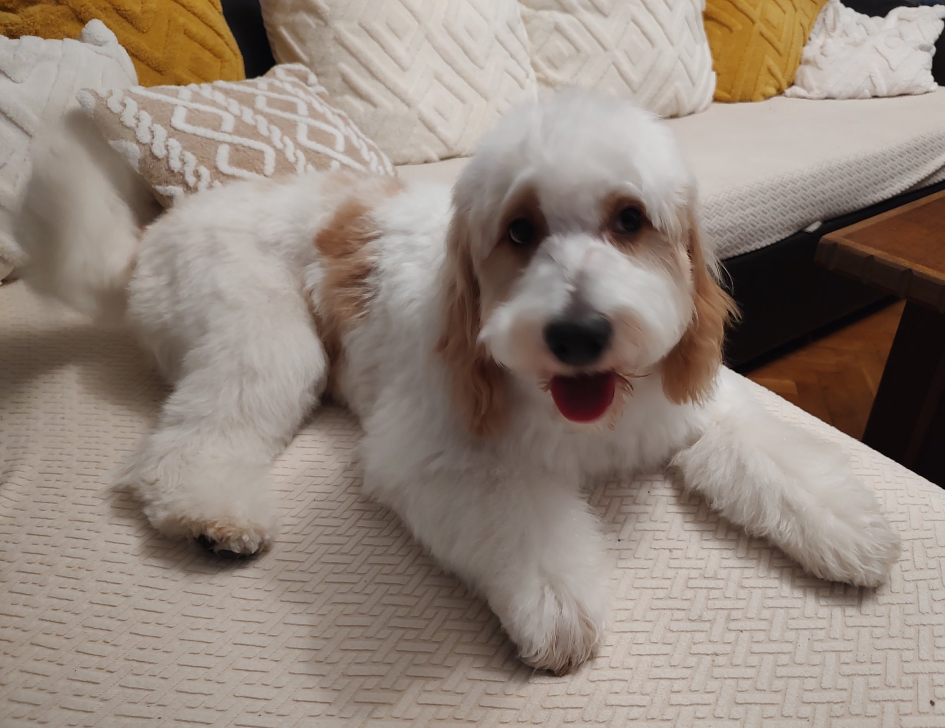 А!И понеже, наоколо имаме само мъжки кучета, затова е й със син нашийник!