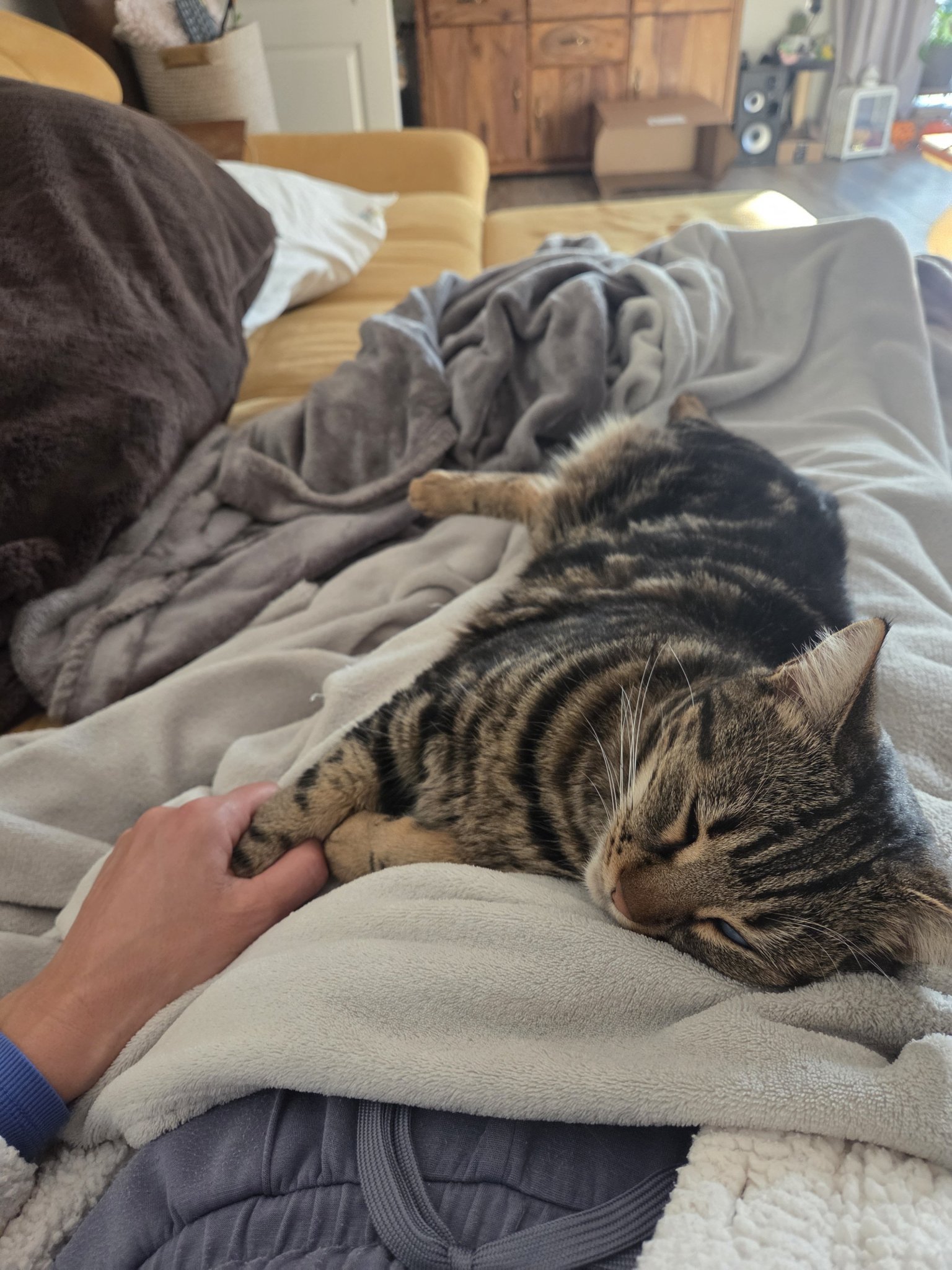 Сутринта Миси ме чакаше да се събудя, лежейки до мен. Като ме усети, че отворих очи, дойде да се настани върху мен. Сега трябва да ставам, обаче сърце не ми дава да я преместя.