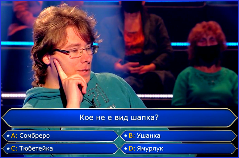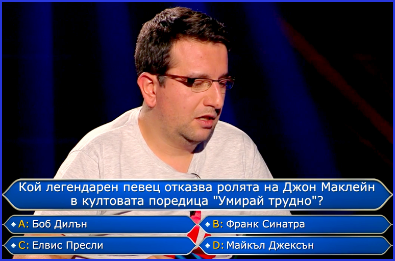 Трето, дори и да достигнеш до 10000 лв., то със сигурност ще си без жокери и въпросът ще е такъв, че ще е от възможно най-слабата ти/непозната сфера(едно че преди играта се те проучили, второ че и в хода на играта вече ти знаят силните и слабите страни).