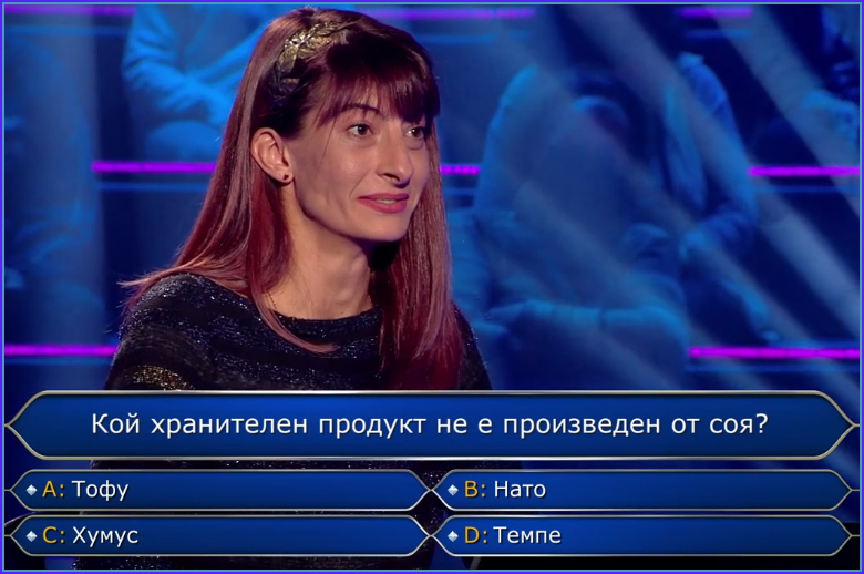 Червенокоската е с голямо самочувствие,ама не виждам знания! Жокер на пети въпрос! И то за хумус!