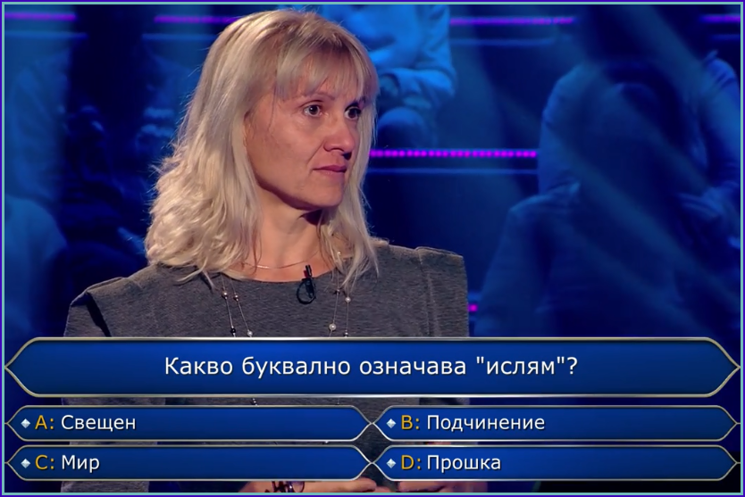 Как ги праскаше и с два жокера имах надежди да сътвори нещо голямо, но уви. Въпросът за исляма беше лесен (в смисъл като за нея имам предвид, аз го знам, ама това е защото съм чел в книгите и просто го помня), бях сигурен, че го знае, как може. Ех, как ме е яд за жената.