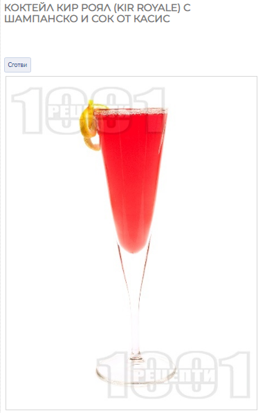 Пак неточен въпрос. Не бях чувала за Кир Роял и попрочетох малко. Прави се не от сок/сироп от касис, а от ликьор от касис.
