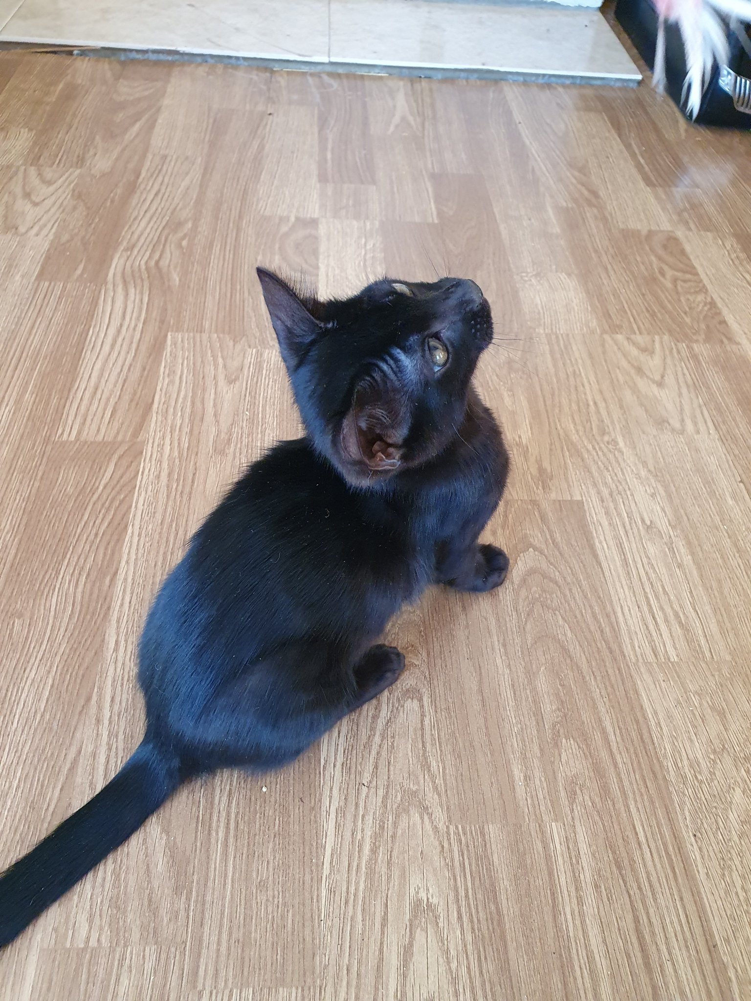 Храненето на котето трябва да се състои от лечебна храна под формата на гранули или мокра храна, като същевременно се предлага и домашно приготвена храна. Препоръчителното количество домашна храна е около 100 грама на хранене, като се следи консумацията. Важно е да предпазите стомаха на котето и да наблюдавате интереса му към храната. Добавянето на витамини за козина и очички може да бъде от полза, но трябва да се консултирате с ветеринарен лекар за подходящите видове и дози.