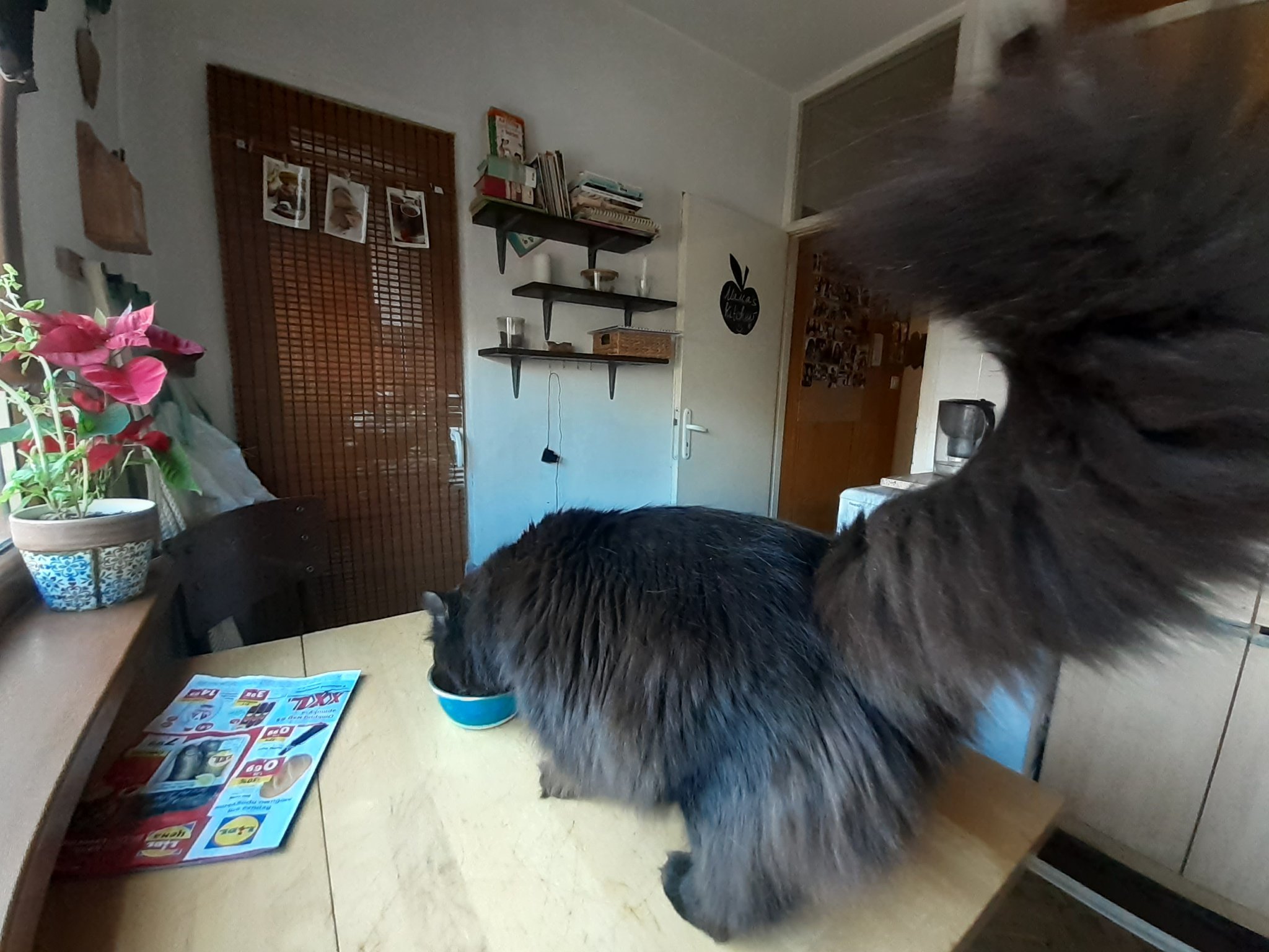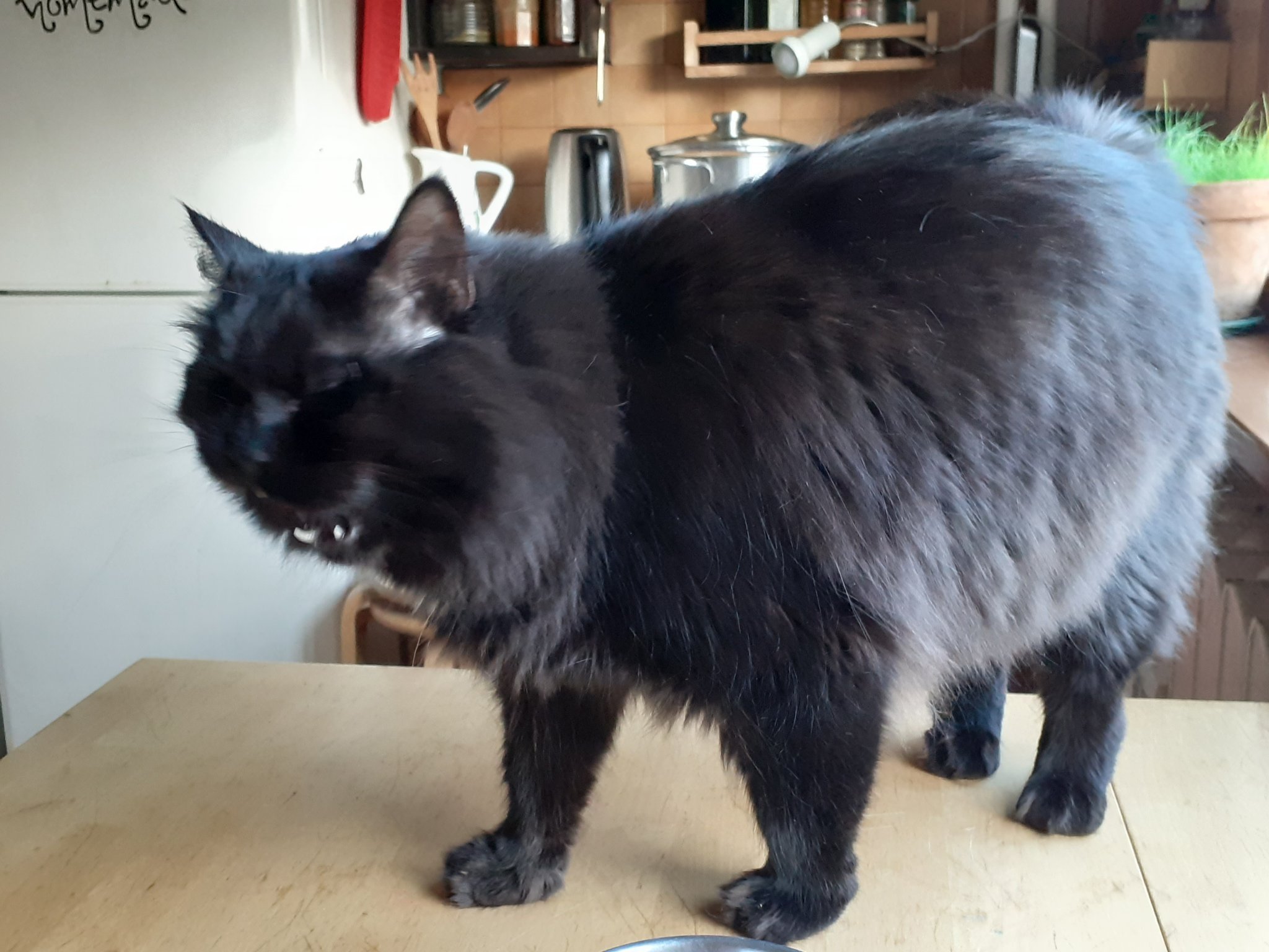 Храненето на котето трябва да се състои от лечебна храна под формата на гранули или мокра храна, като същевременно се предлага и домашно приготвена храна. Препоръчителното количество домашна храна е около 100 грама на хранене, като се следи консумацията. Важно е да предпазите стомаха на котето и да наблюдавате интереса му към храната. Добавянето на витамини за козина и очички може да бъде от полза, но трябва да се консултирате с ветеринарен лекар за подходящите видове и дози.