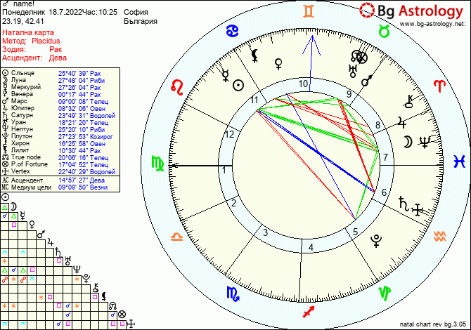 Виждам че между планетата управител на Дева (асцедента) и управителя на десцедента  (Риби) има тригон който означава, че отсрещната страна е бил сигурна в решението си нали?  Има ли друг аспект, който пропускам в картата и да означава че това е само временно решение?