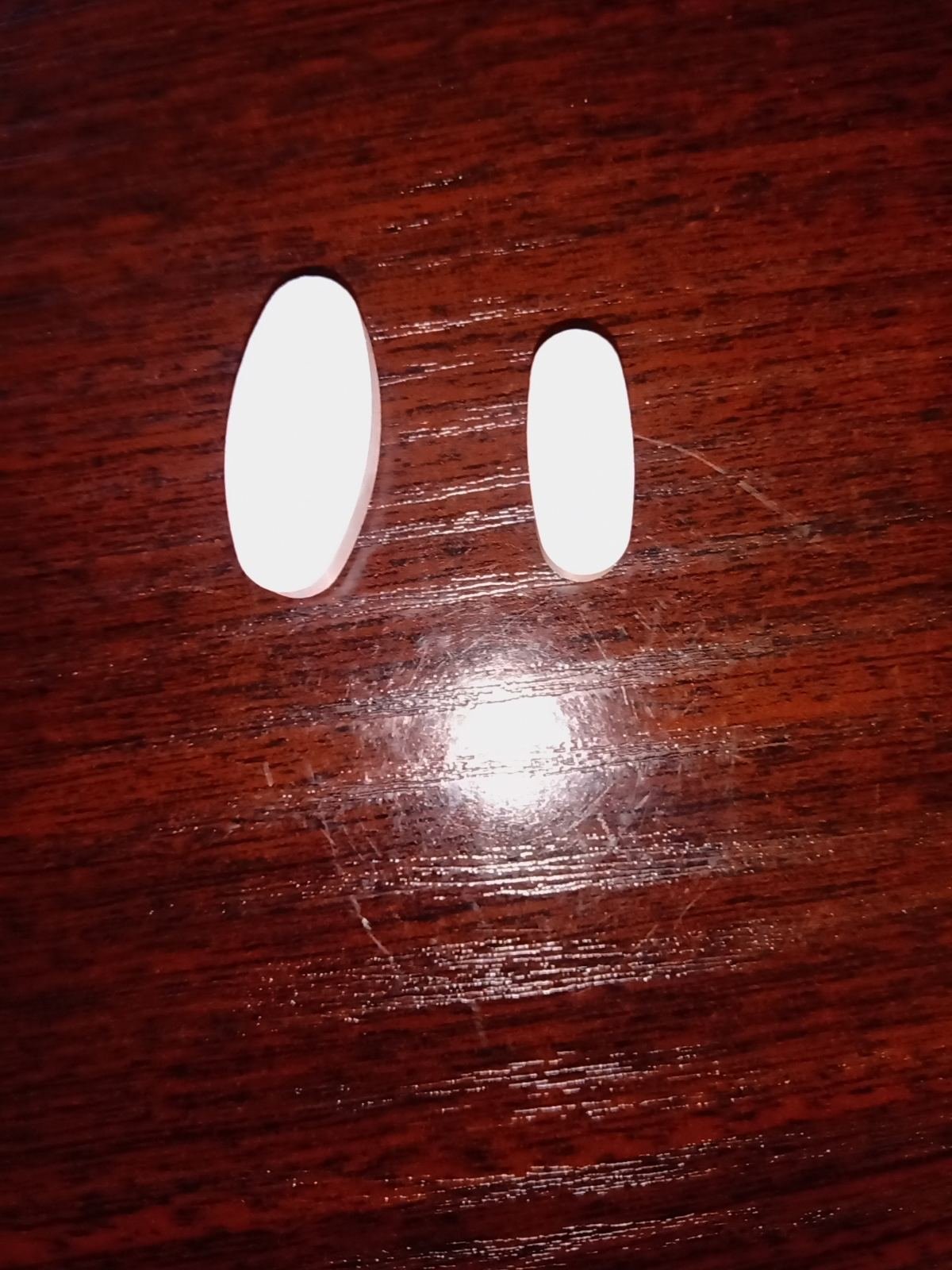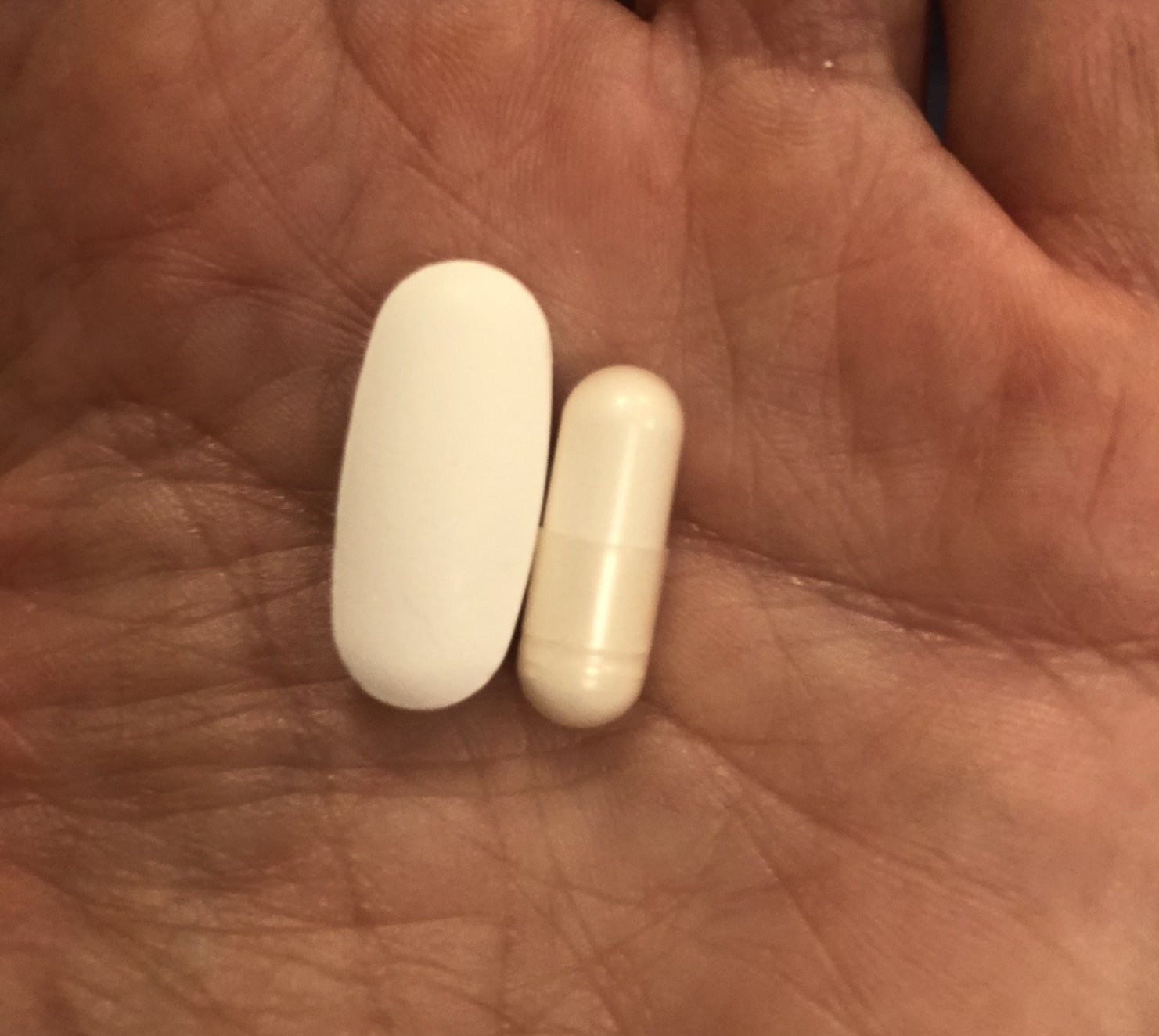 А ето и таблетката, сравнена с обикновена капсула вит К2. Наистина засяда на гърлото и аз поне усещам, че се задушавам. Този, който я е измислил, със сигурност не я е преглъщал.