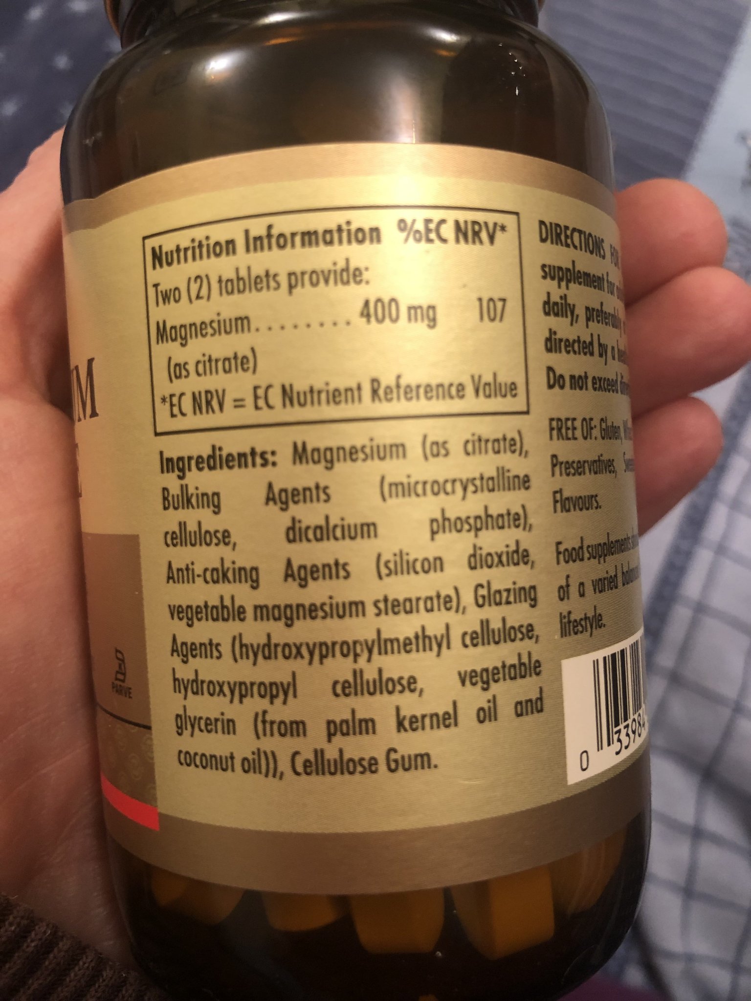 На мен ми е идеален магнезиевия цитрат на Хая лабс, 200 мг. Не знам колко магнезий има в него, обаче е факт, че още от първата таблетка ми спряха крампите, чувствам си мускулите отпуснати като легна да спя, далеч по-спокойна съм, по-лесно заспивам и по-качествено спя. Явно е количеството, което ми трябва/липсва...А върхът е като взема и един подезичен мелатонин...🙂 Поносима големина са таблетките, по-големи от тези не искам да виждам...😆 Аз понякога имам трудност да гълтам и по-малки таблетки, особено ако се случи да хлъцна точно преди да глътна хапчето...😅 Дори с Л-тироксин (супер мини хапченца) съм имала проблеми и съм ги чувствала като залепени за гърлото за известно време...