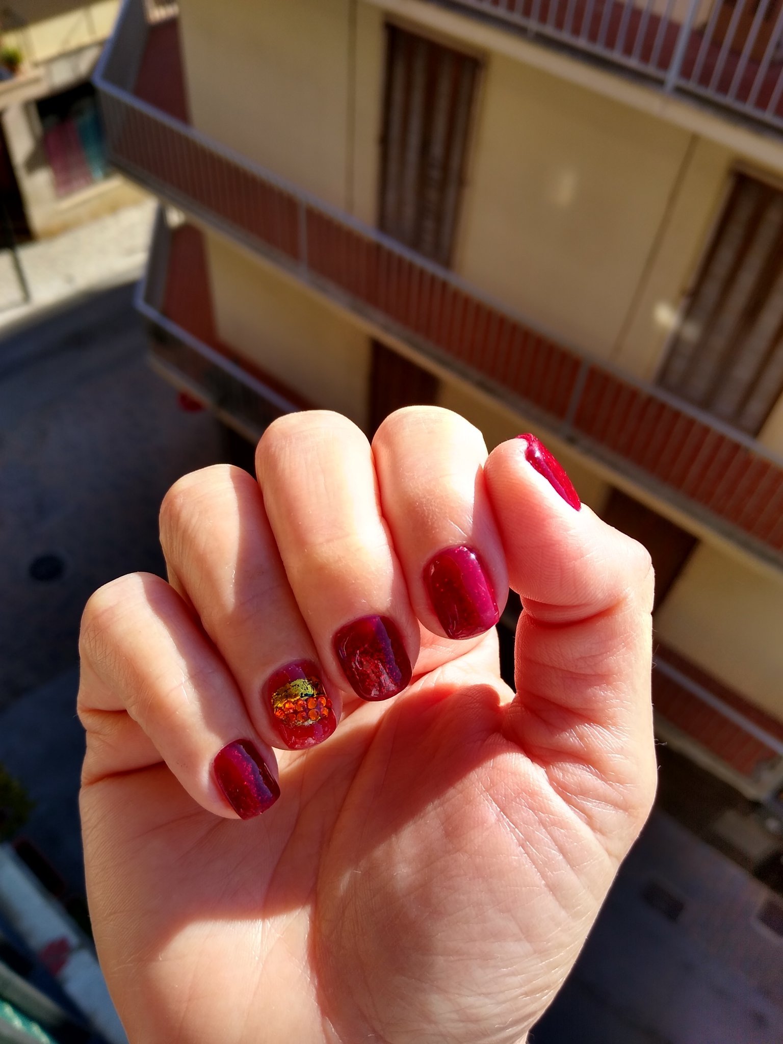 Сега за месеца на виното и любовта. В случая е всеизвестният БП08, на безименните- орли ред карпет( подарък ми е, аз не давам толкова пари за лак вече). Декорацията на безименните е консервна кутийка с червен хайвер.