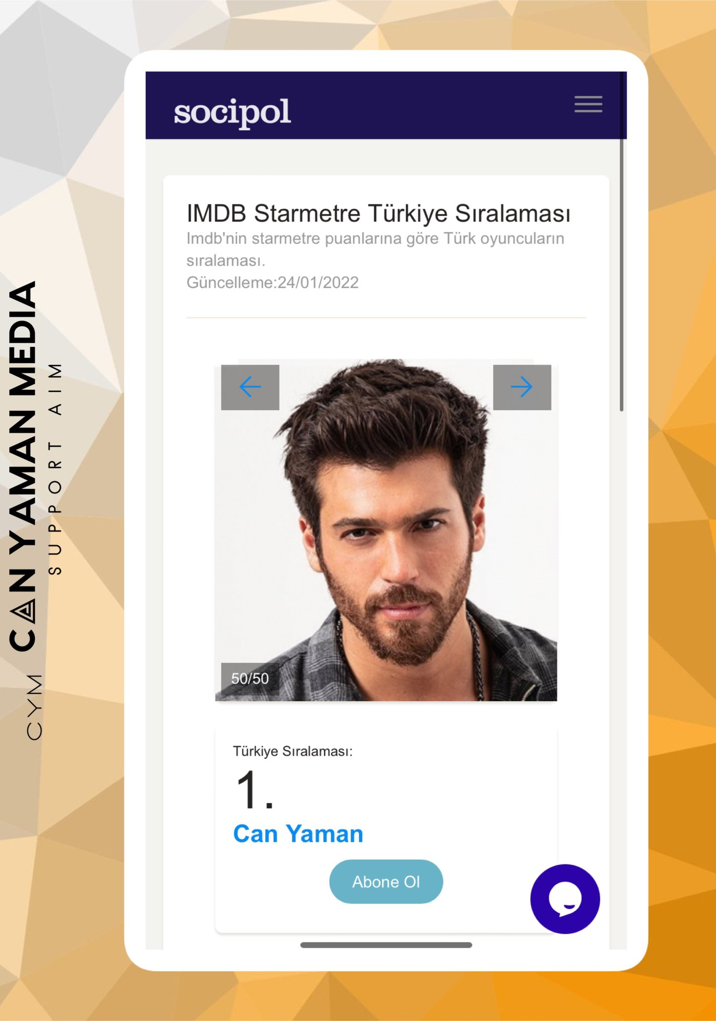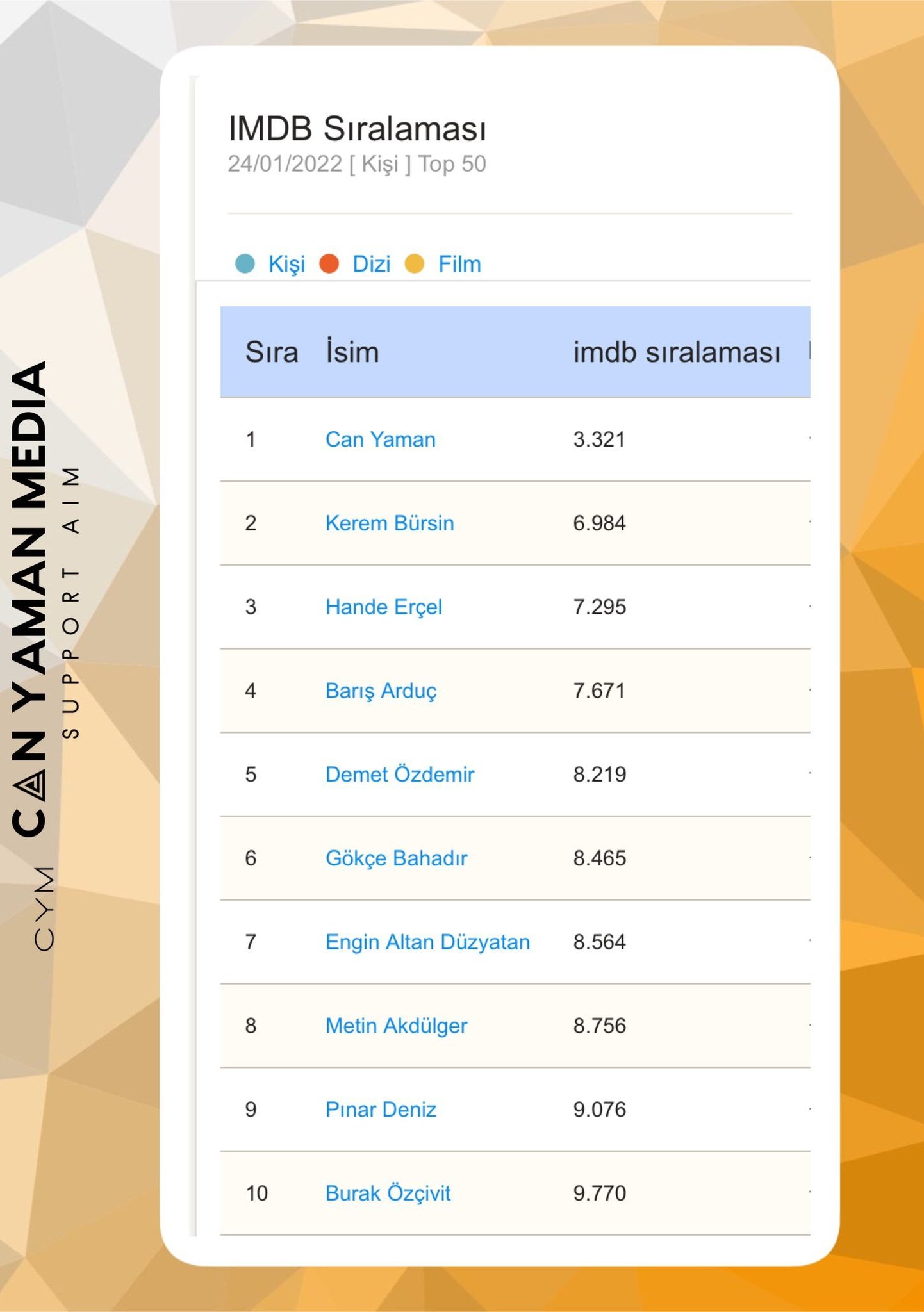 Can Yaman отново е номер 1 от всички турски актьори в седмичната класацията на IMDB, започваща на 24.1.2022 г.