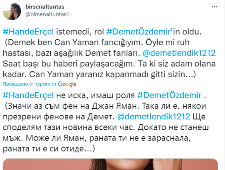 Грозденце, благодаря ти за чудесните новини, които ни носиш. Отдъхнах си с облекчение - Birsen Altuntaş попари надеждите на пишман актрисата, която драпаше да участва в сериал с нашия Джано.