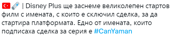 Световният гигант Disney Plus, който прави страхотна подготовка за навлизане на турския пазар, създава вълнение в телевизионните сериали и филмовата индустрия с последователните си атаки. Продължавайки дейността си чрез мениджмънта на FOX, компанията изпълнява проекти с имена като Halit Ergenç, Aras Bulut İynemli, Engin Akyürek, Can Yaman, Şahan Gökbakar, Pınar Deniz, Buğra Gülsoy, Demet Özdemir, İrem Helvacıoğlu, Hande Erçel.