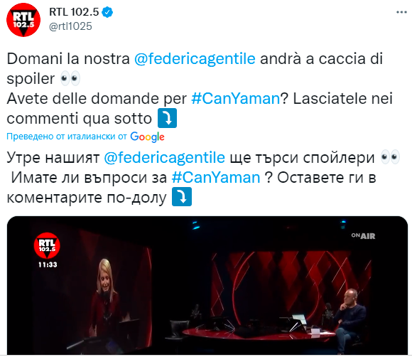 "Нашата @federicagentile вече е започнала да търси #CanYaman ...