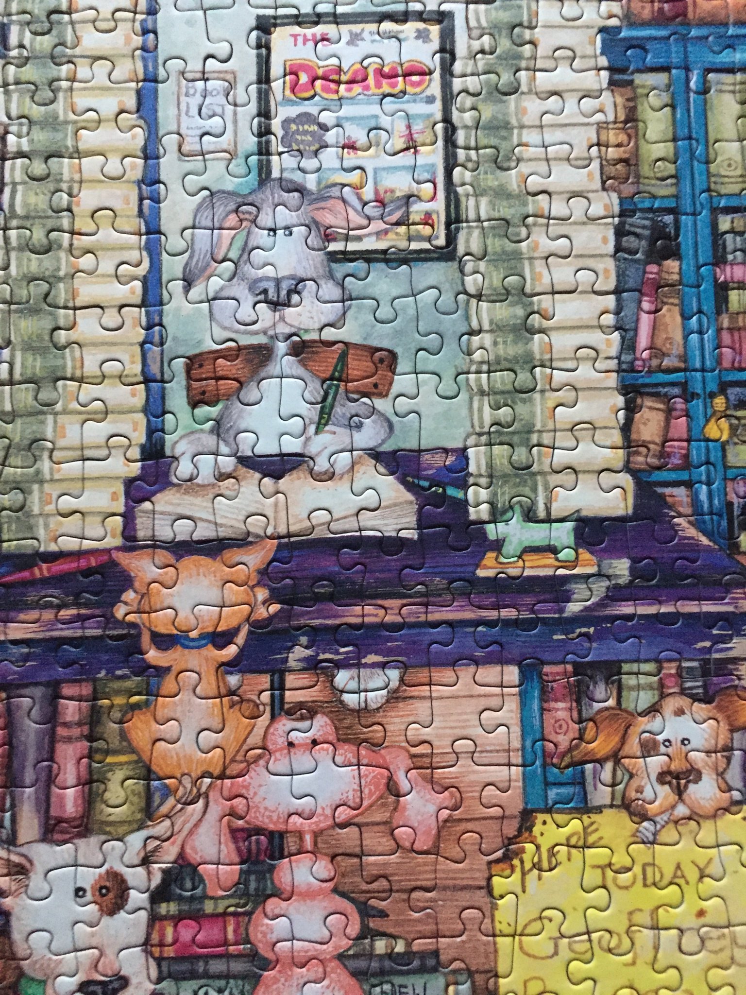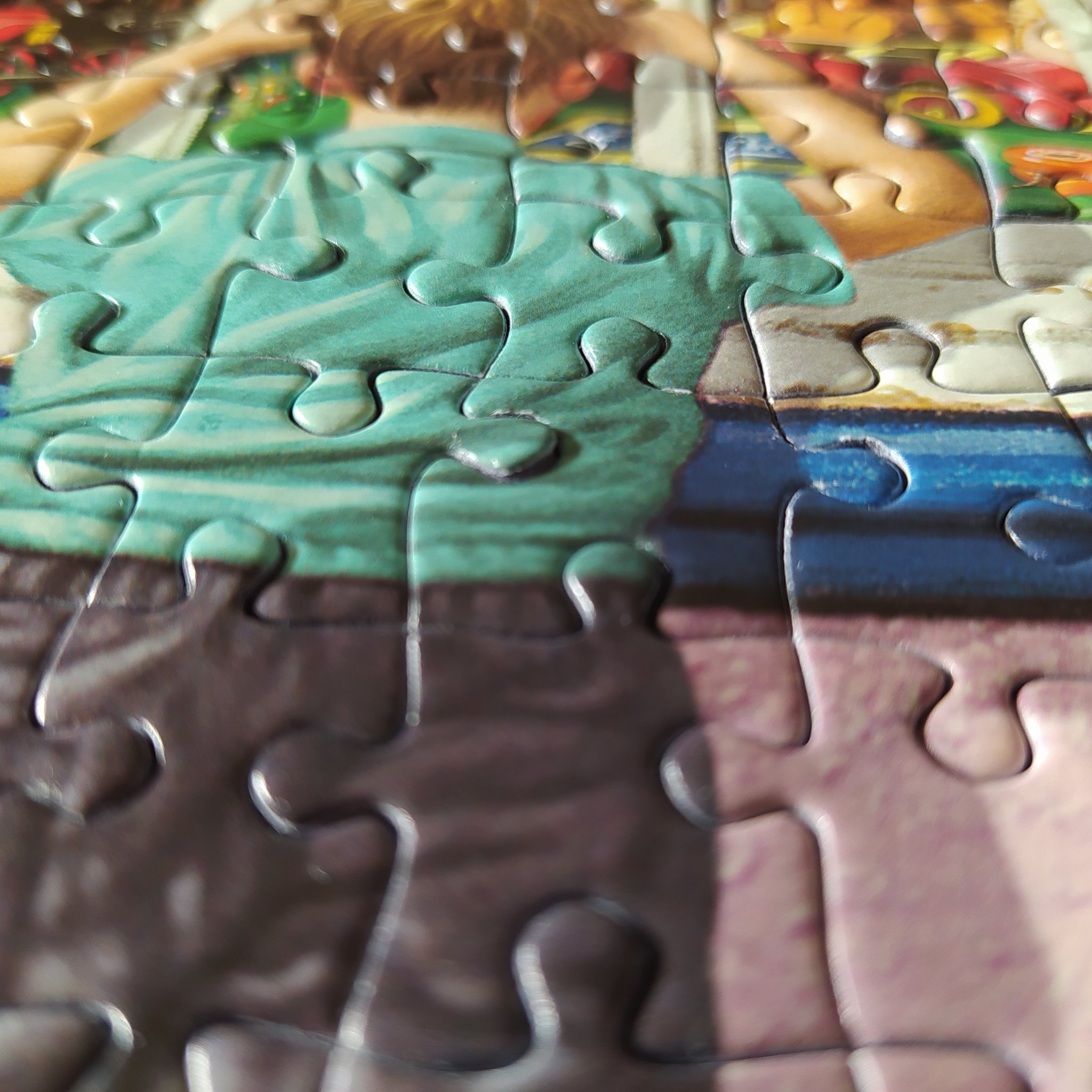 Зори, напоследък всички Гибсъни, които съм редила са просто уникални, но точно първия който си взех, един от 500 части, беше толкова скапан, че почти 1 година бягах от марката като дявол от тамян. Парчетата ставаха навсякъде, имаше скъсани, нацепени, залепени, като за капак, нещо което никога не съм виждала след това в пъзел - имаше парчета, които бяха втъкнати едно в друго и върху лицевата страна на едното имаше залепен нещо като последния слой хартия само че отгоре.