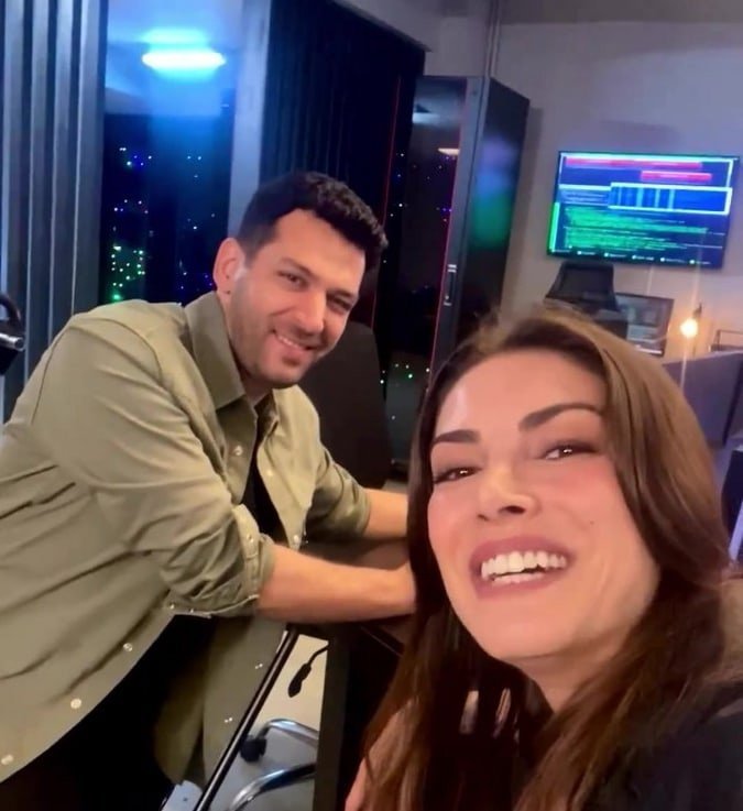 Тук е с актьорите Гьокче Акйълдъз и Мехмед Айкач.