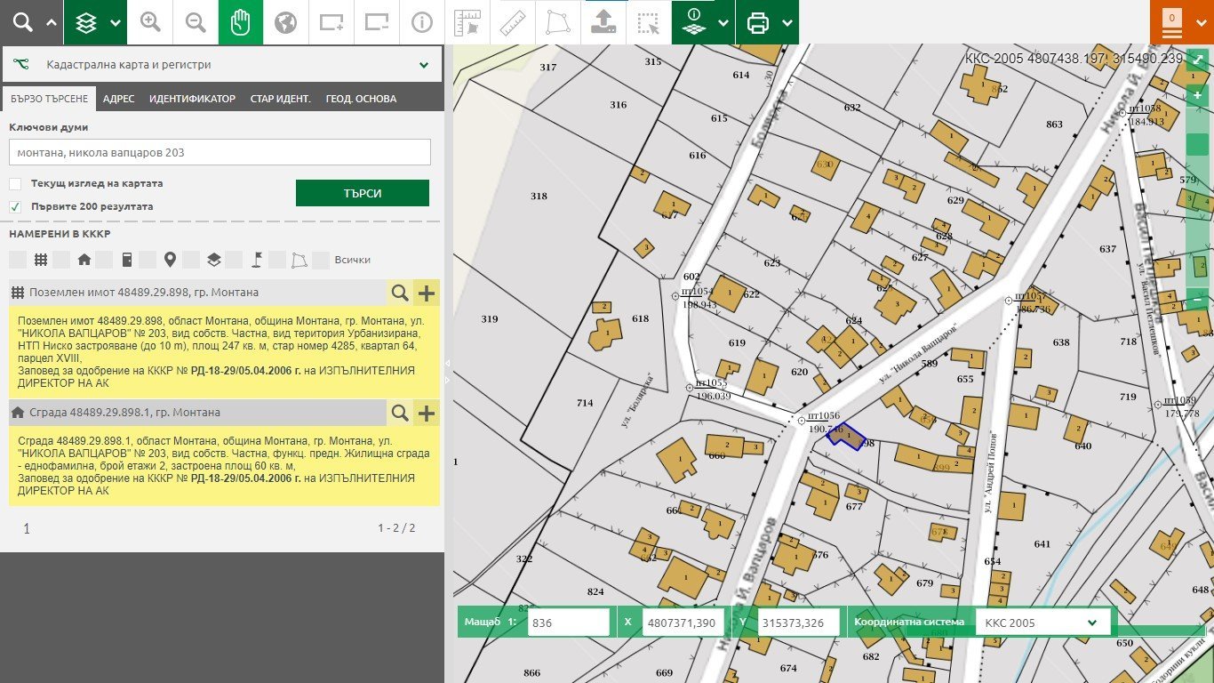 Сграда 48489.29.898.1, област Монтана, община Монтана, гр. Монтана, ул. "НИКОЛА ВАПЦАРОВ" № 203, вид собств. Частна, функц. предн. Жилищна сграда - еднофамилна, брой етажи 2, застроена площ 60 кв. м,