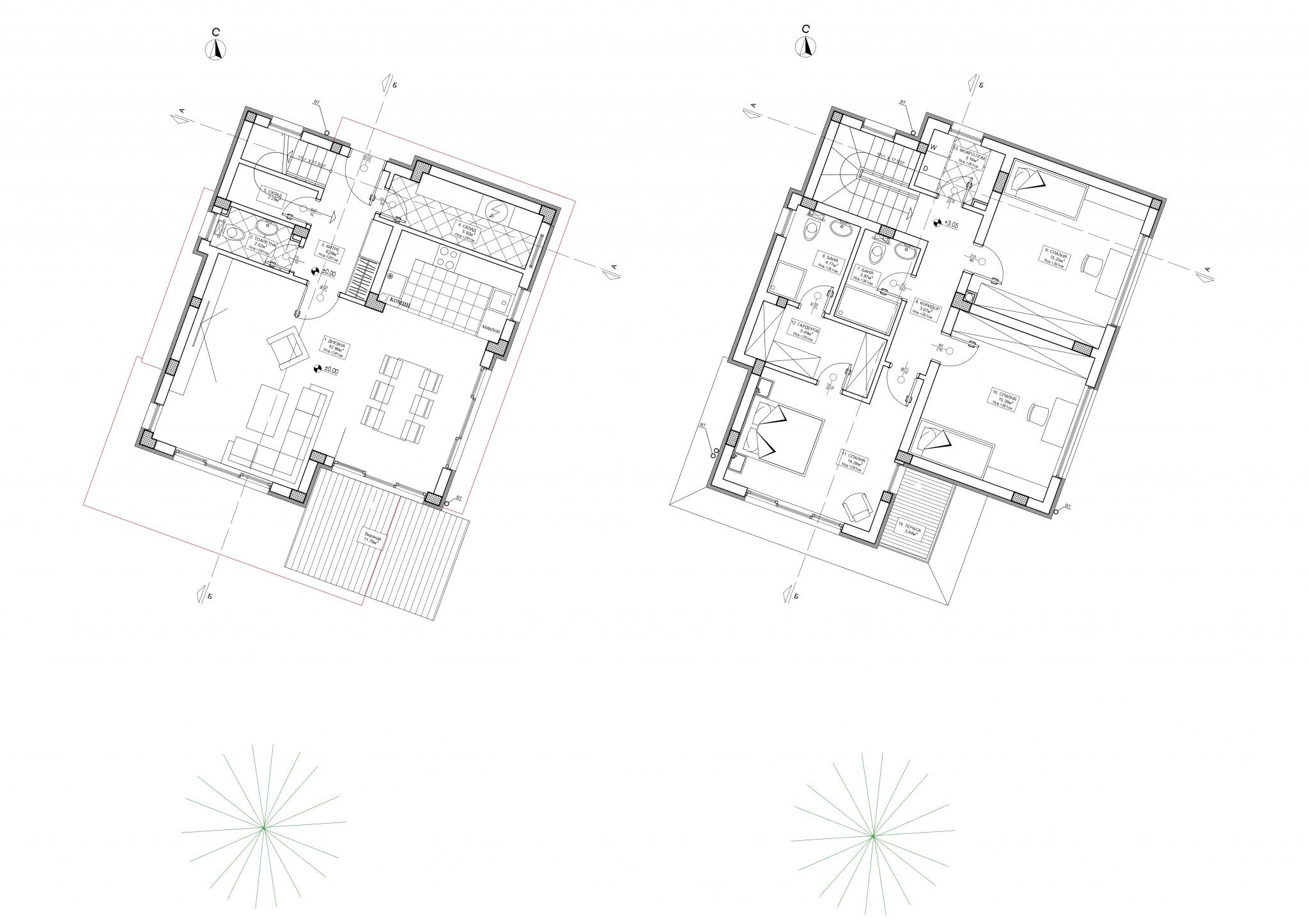 Gerundiq,на двете югоизточни спални предлагам отново К-бяло-К.Предполагам има стреха над тях.