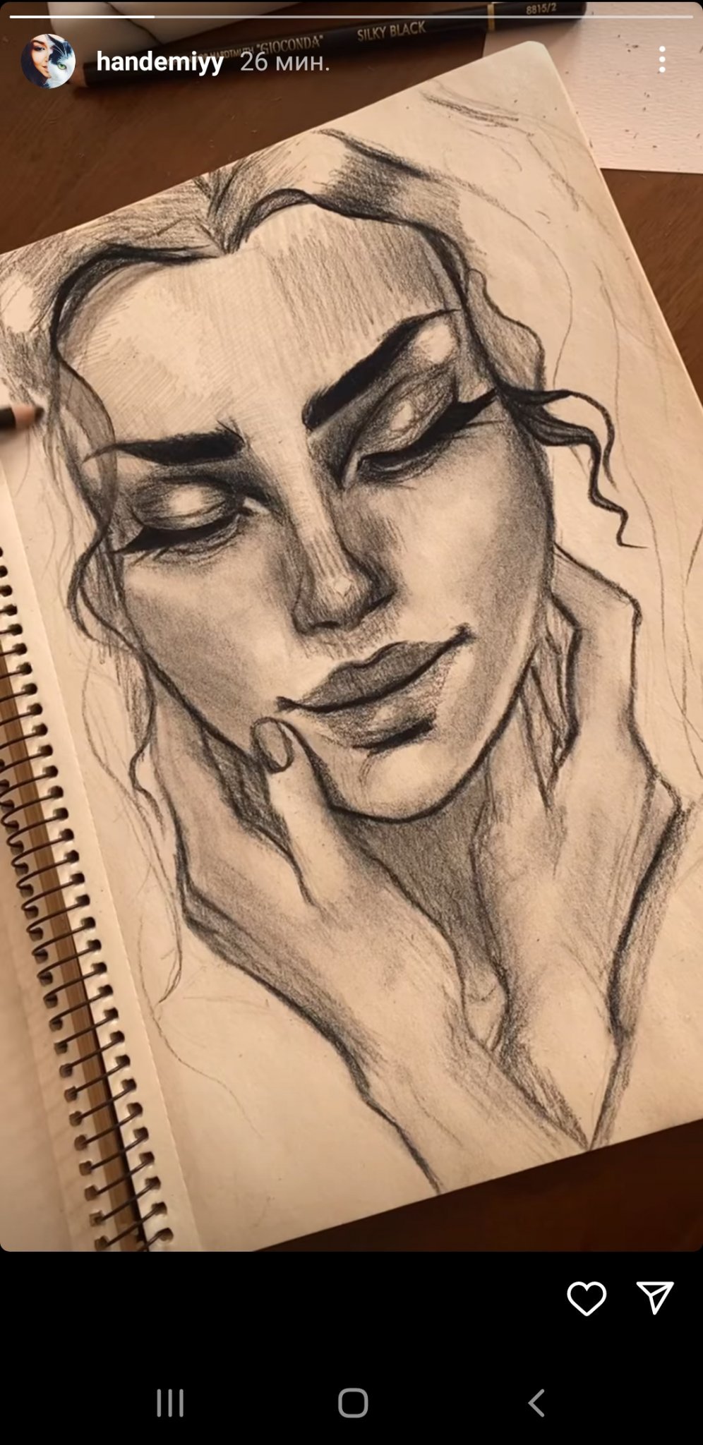 Ханде намира спокойствие в страстта си да рисува. „Изгубих се в бои, нахраних душата си и мястото, където се чувствам най-добре… Ханде Ерчел.