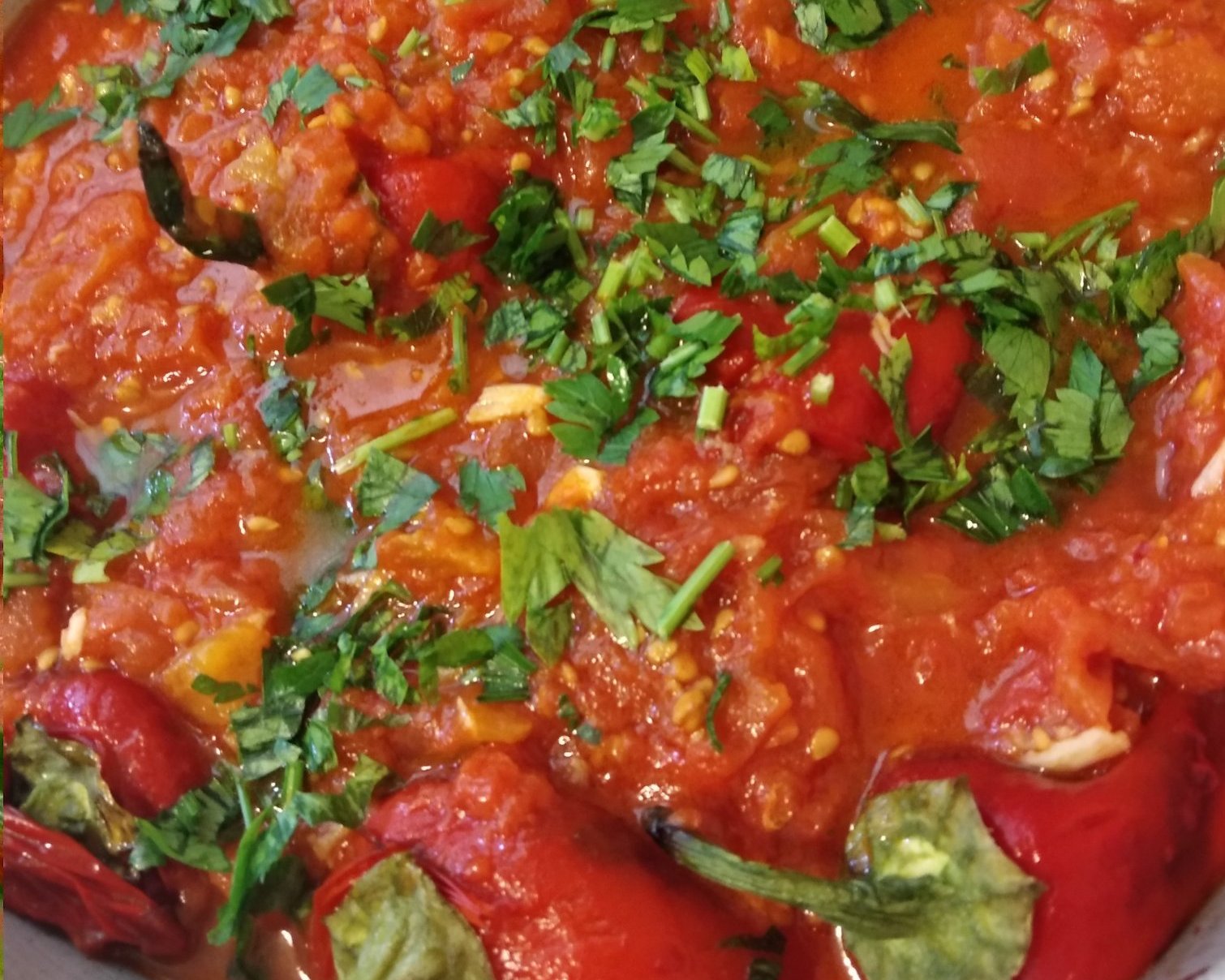 Другото беше сурова туршия, картофена салата с червен лук, ярешка курбан чорба, кюфтета на фурна и постни пълнени чушки с ориз, боб и гъби рижика, но са без снимка, че гостите дойдоха и нямаше време да снимам.