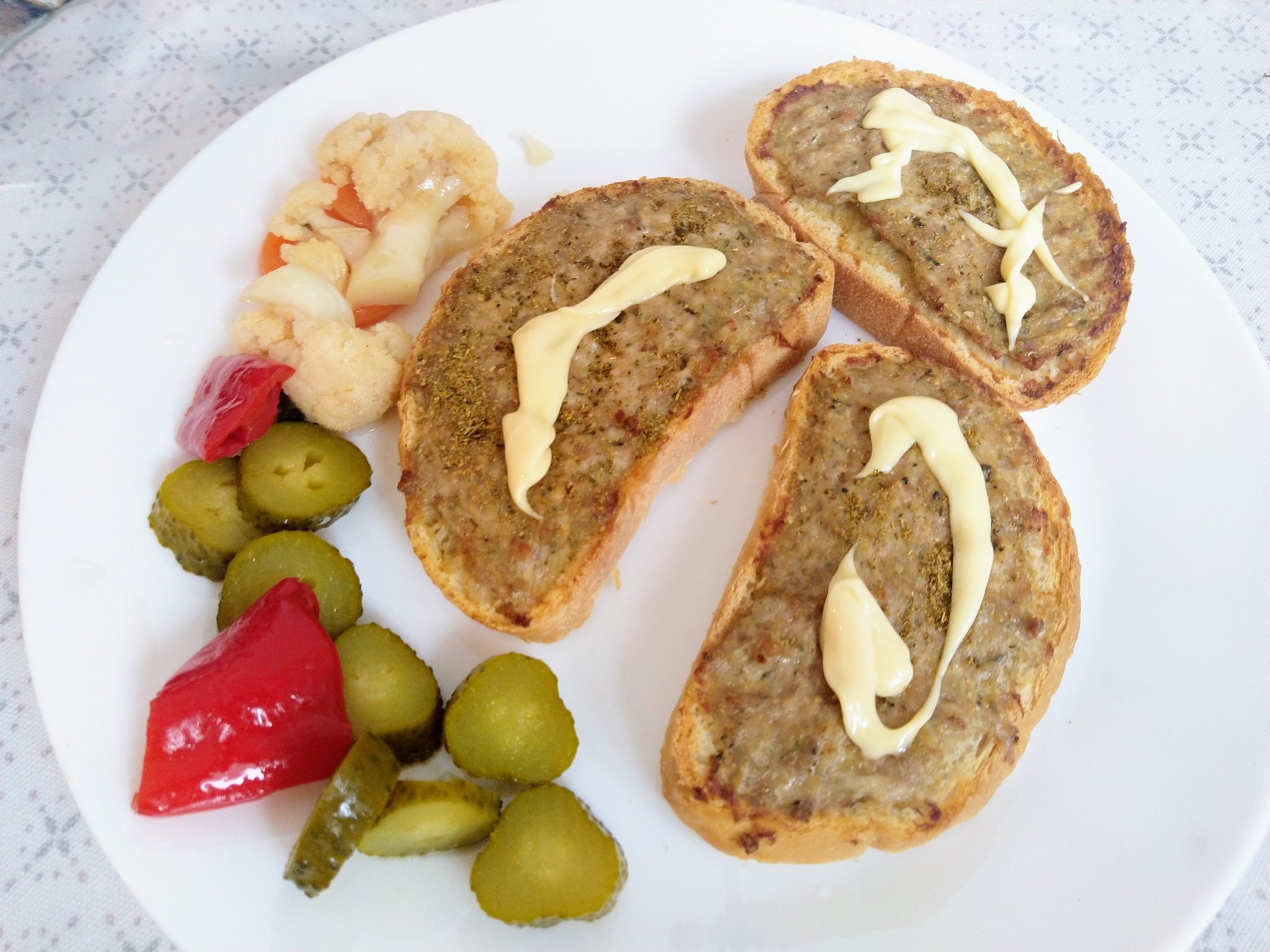 кюфтета на фурна с пържен лук, майонеза и прясно мляко в каймата