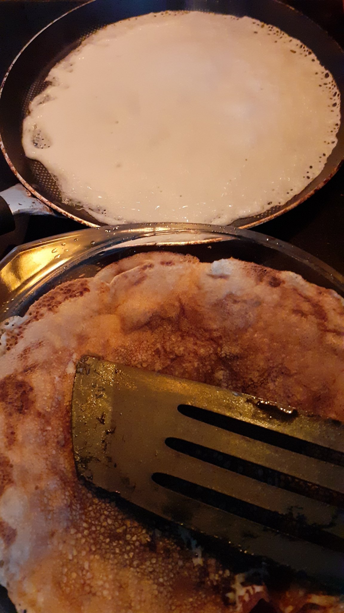 Беше направил яйцата на водна баня. Не разбрах защо, след като и в тигана ги прави достатъчно сочни. Обаче така яко беше загорил купата на "водната баня", че три пъти я разкисвах и мих. Joy