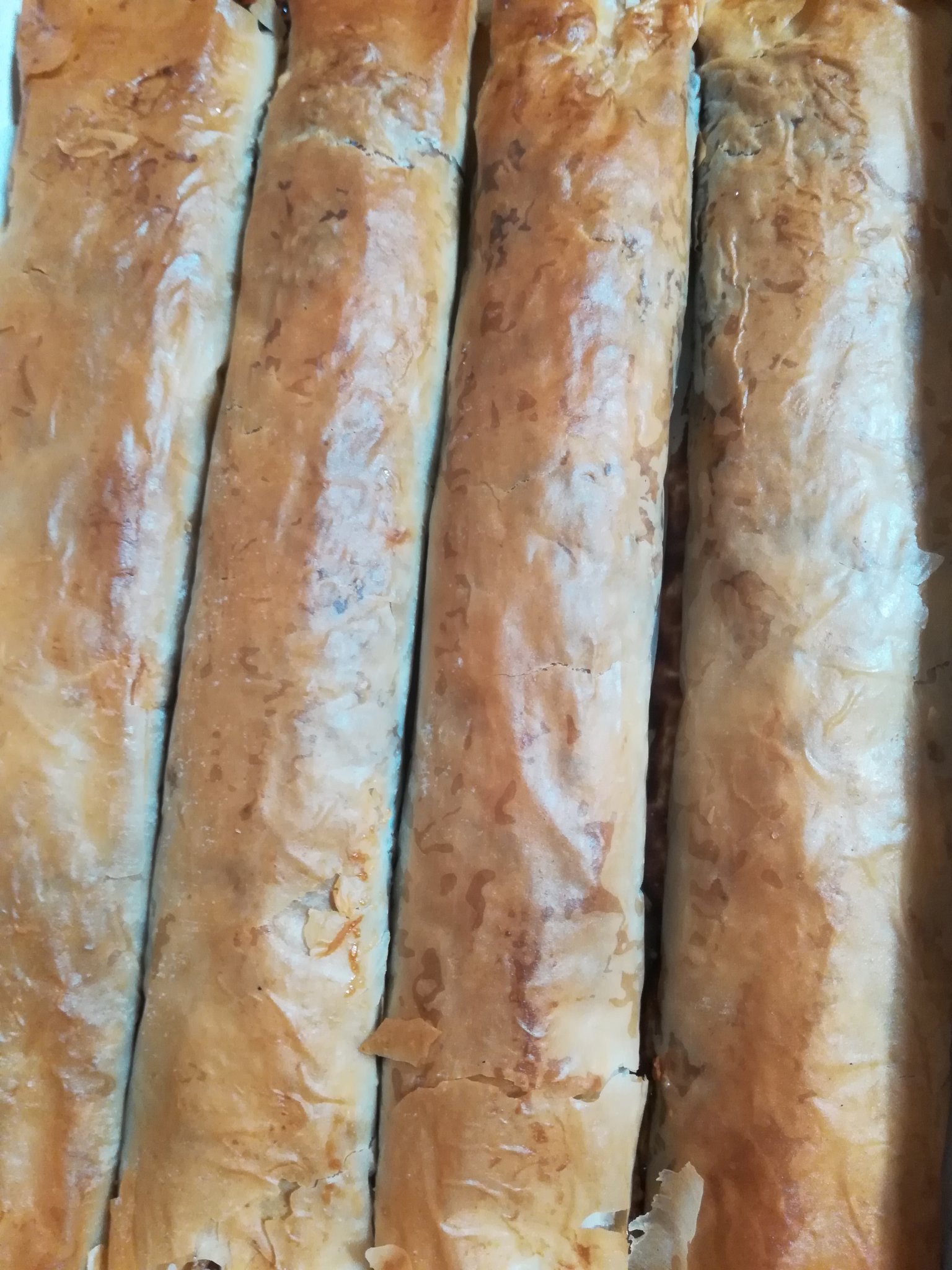 Това е само едната тава, а излязоха 3, то и корите ми бяха 500 г /по рецепта 400/